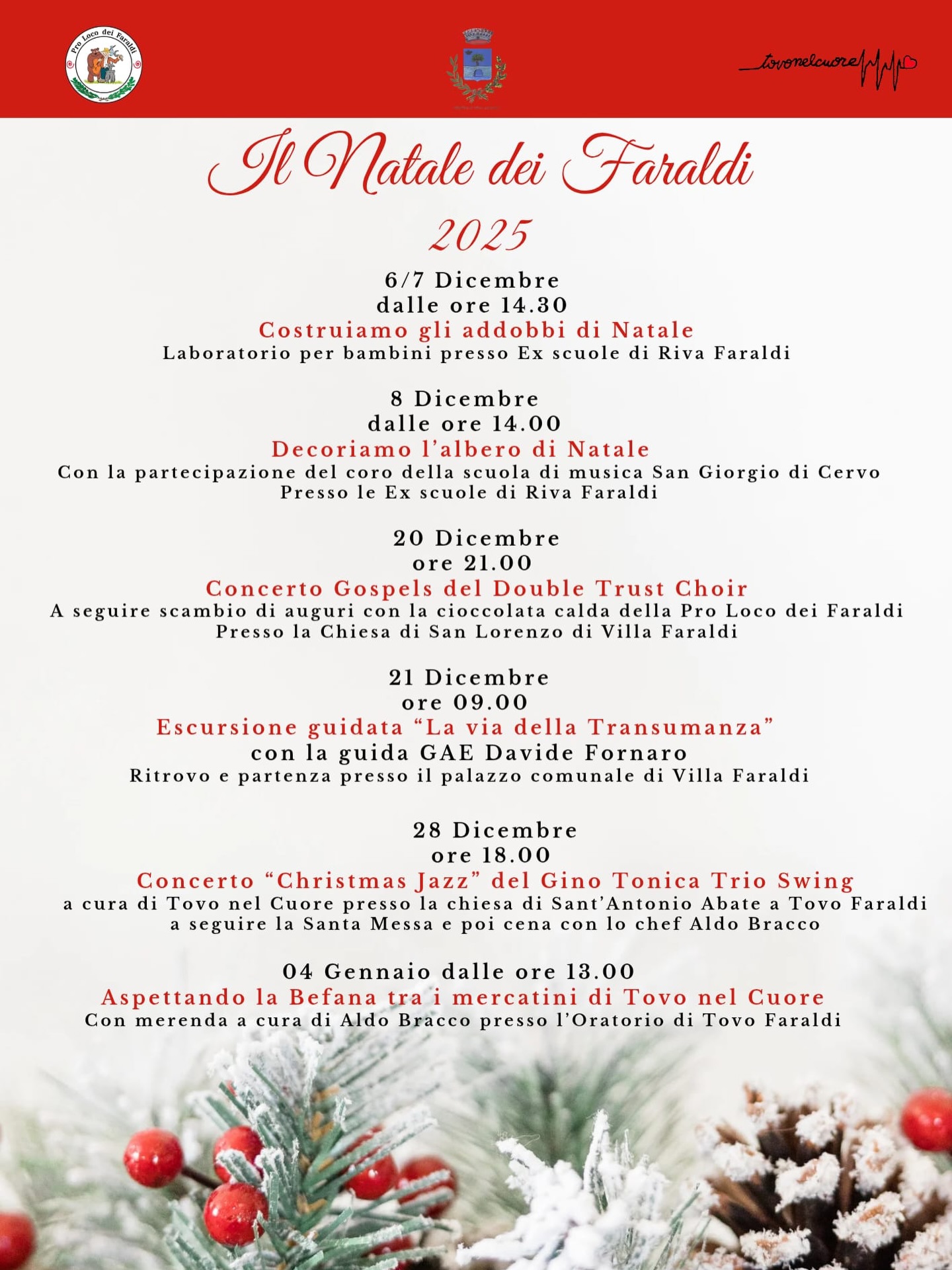 Un mese intero di iniziative per vivere insieme la magia delle feste. È questo lo spirito de ‘Il Natale dei Faraldi 2025‘, il cartellone che porterà a Villa Faraldi e nelle sue frazioni laboratori creativi, concerti, momenti spirituali, escursioni e appuntamenti conviviali.