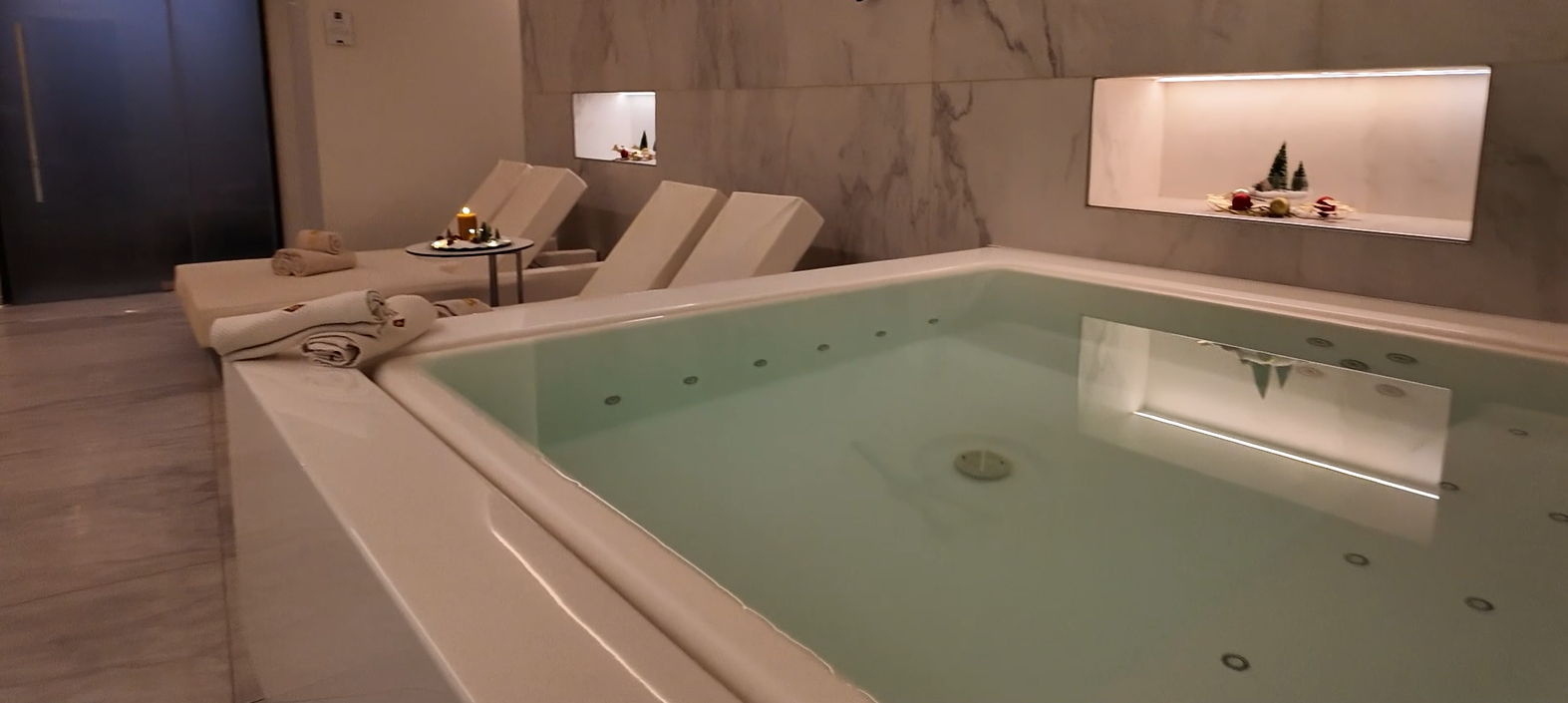 La spa propone due percorsi benessere, illustrati in tre lingue, studiati per rispondere a esigenze differenti: uno rigenerante e uno rilassante. Entrambi includono una sauna con temperatura fino a 90 gradi, un bagno turco aromatizzato ai frutti tropicali, due docce – di cui una emozionale con essenze di menta fresca – e una vasca idromassaggio riscaldata a 36,5 gradi.