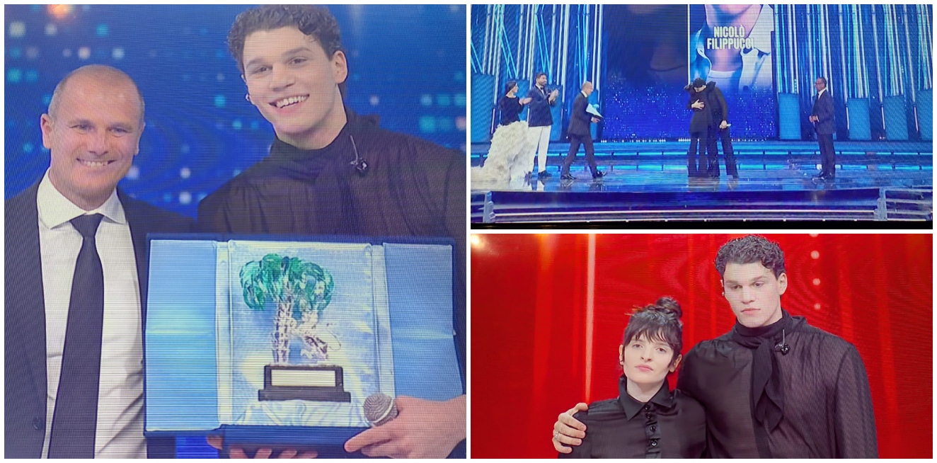 La terza serata del Festival di Sanremo si è aperta, infatti, con la finalissima delle Nuove Proposte, guidata da Gianluca Gazzoli. A contendersi il titolo sono stati Angelica Bove e Nicolò Filippucci. Filippucci ha commentato: “Grazie a tutti, non so che dire, sono molto emozionato“. A decretare il vincitore un sistema di voto distribuito tra: 33% sala stampa tv e web, 33% radio e 33% televoto da casa. L’ex allievo di Amici ha vinto con il 60.1% contro il 39.9% di Bove.