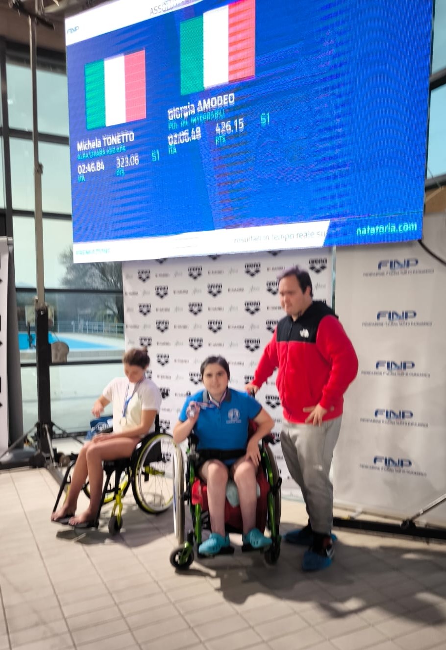 Ottimi risultati per la giovane atleta sanremese Giorgia Amodeo, portacolori della Polisportiva IntegrAbili, ai campionati italiani assoluti in vasca corta di nuoto paralimpico che si sono svolti a Fabriano nel weekend del 15-16 novembre. Giorgia, accompagnata dalla mamma Donatella Barilla, tecnico FINP, realizza un vero e proprio “en plein”: conquista tre medaglie d’oro e fa registrare tre primati italiani di categoria nei 50 stile libero, 50 dorso e 100 stile libero per la categoria S01.