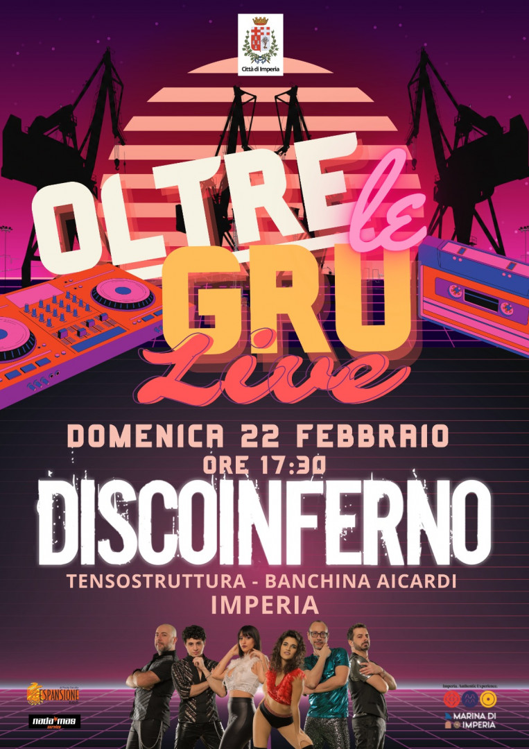Domenica 22 febbraio, a partire dalle 17.30, il Palatenda di Banchina Aicardi a Oneglia farà da cornice a “Oltre le Gru Live”, l’evento a ingresso gratuito organizzato dal Comune di Imperia nel segno della musica e del divertimento.