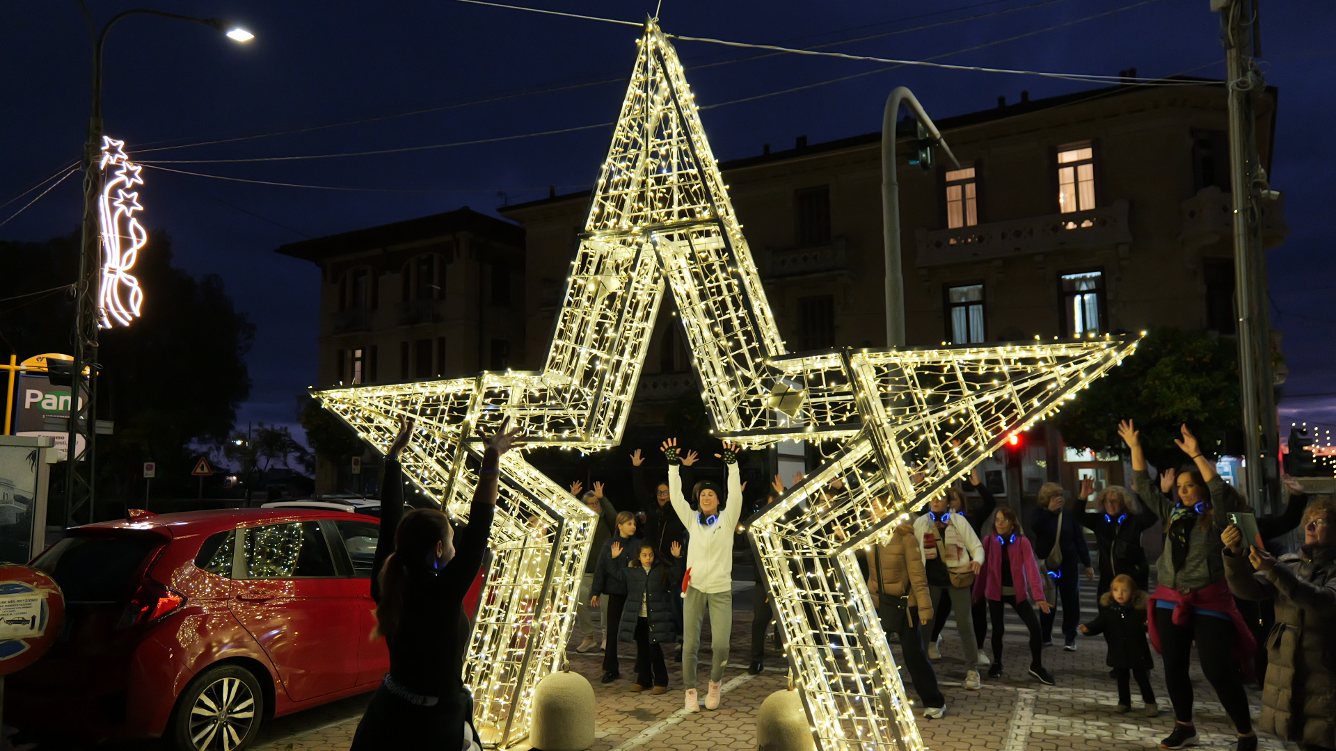 L’evento è stato reso possibile anche grazie al sostegno delle realtà locali. “Voglio ringraziare tutti i volontari e coloro che hanno permesso questa accensione”, ha sottolineato l’assessore. Un ruolo importante è stato svolto dal Descu Spiareté, che ha offerto panettone, pandoro e bevande, contribuendo a rendere l’atmosfera ancora più gioiosa, e da Happiness ASD, protagonista di un flash mob che ha coinvolto anche l’assessore: “Mi ha fatto ballare pure a me, infatti ho ancora il fiatone!”