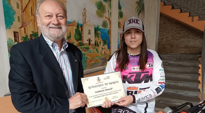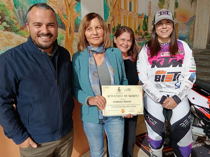“Ringrazio la mia famiglia per il supporto, Matilde Stilo ex campionessa di motocross per il suo costante sostegno, il Moto Club Enduro di Sanremo e il team Tnt che mi ha sostenuto in questa stagione, e un grazie particolare a Giulio Borghi”, ha detto Stephanie Bianchi che ha aggiunto: “Sono contenta di quello che ho fatto ma sono consapevole che ho ancora tanta strada da percorrere, sempre in sella alla mia moto e con Ospedaletti nel cuore”.