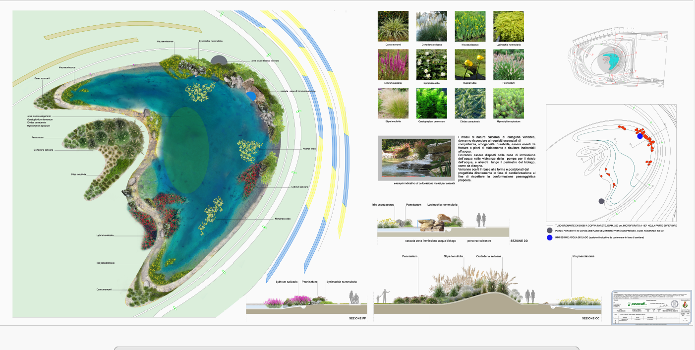 Il sopralluogo ha riguardato anche, naturalmente, l’area verde in fase di realizzazione nella zona di ponente del Parco Urbano. Qui sorgerà il biolago, specchio d’acqua dalla profondità di 40 centimetri, alimentato dal torrente Impero e da un sistema di ricircolo continuo che consente la depurazione naturale dell’acqua, senza ristagni.