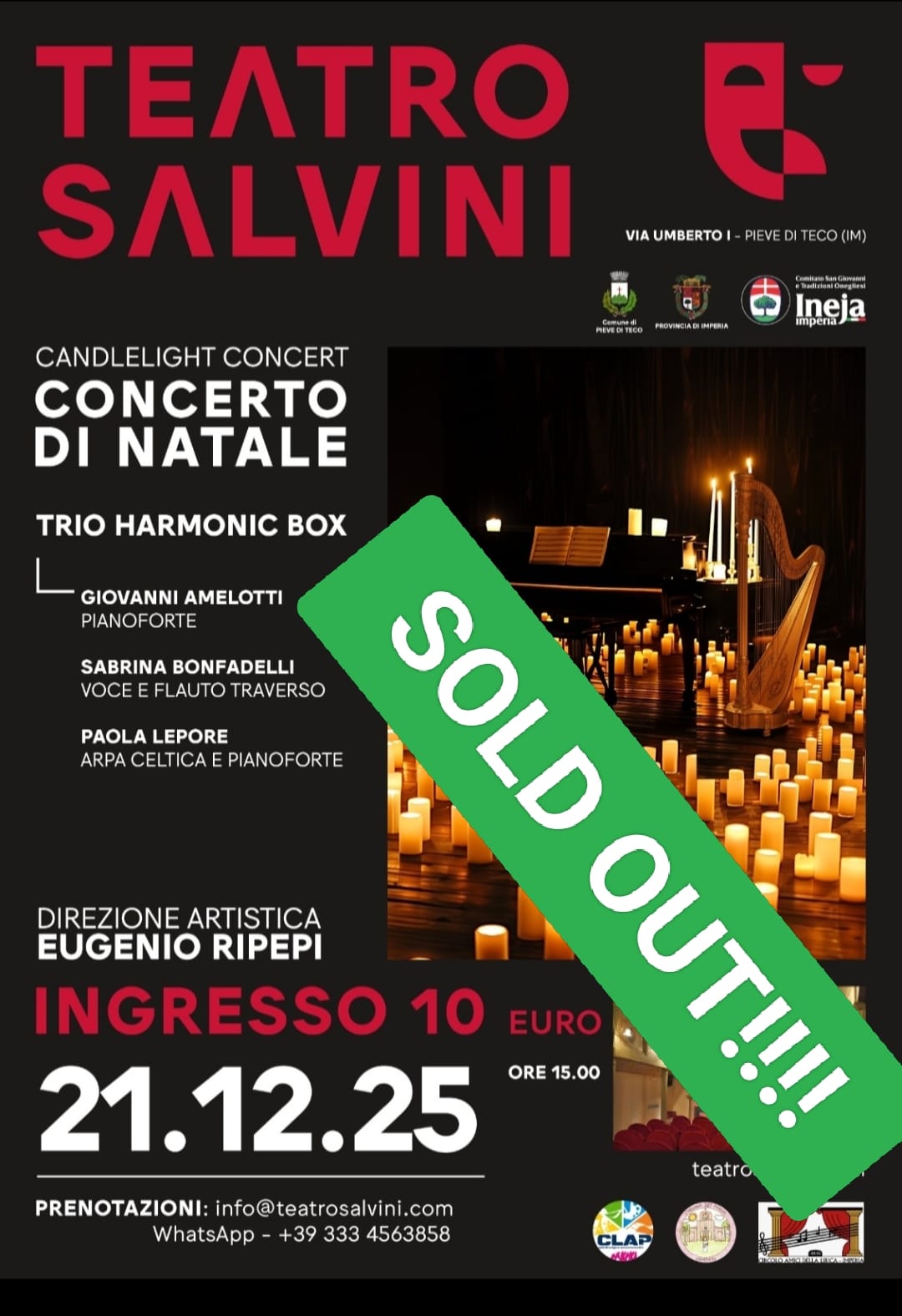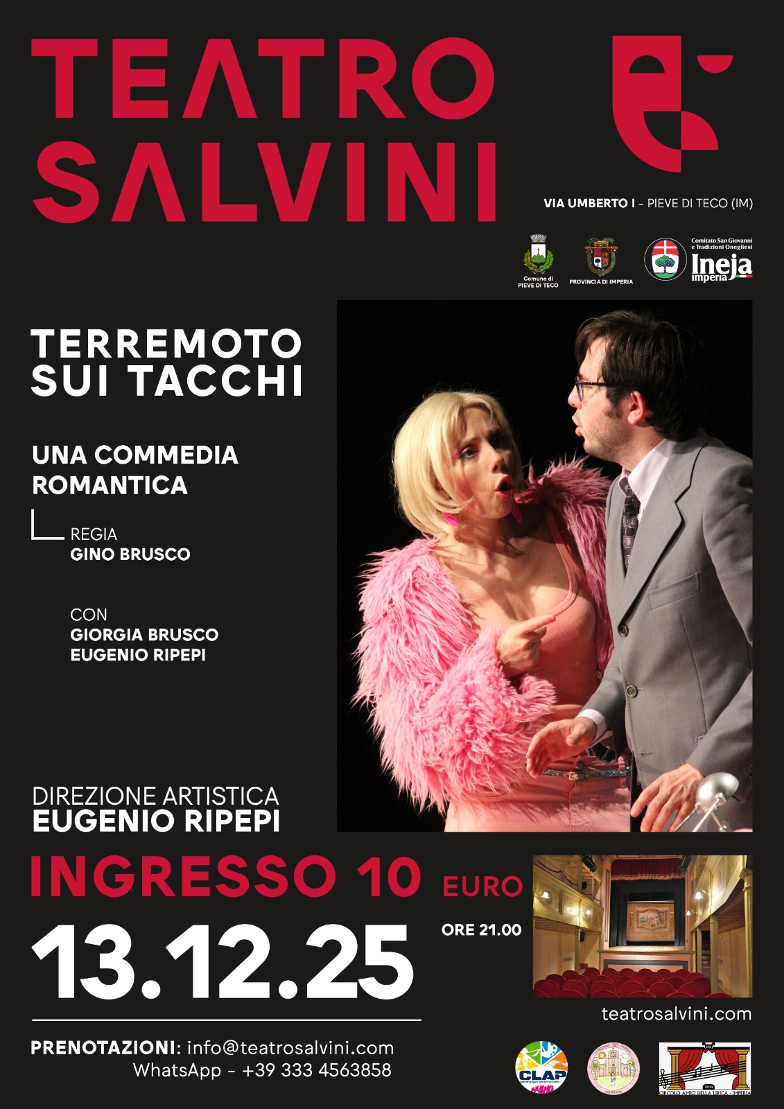 Un dicembre ricco di eventi al Teatro Salvini di Pieve di Teco, per il cartellone diretto da Eugenio Ripepi e organizzato con il Comitato San Giovanni e Tradizioni Onegliesi, con il supporto del Comitato Madonna dei Fanghi di Pieve di Teco e la collaborazione di CLAP Aps, con il sostegno del Comune di Pieve di Teco e il patrocinio dalla Provincia di Imperia.