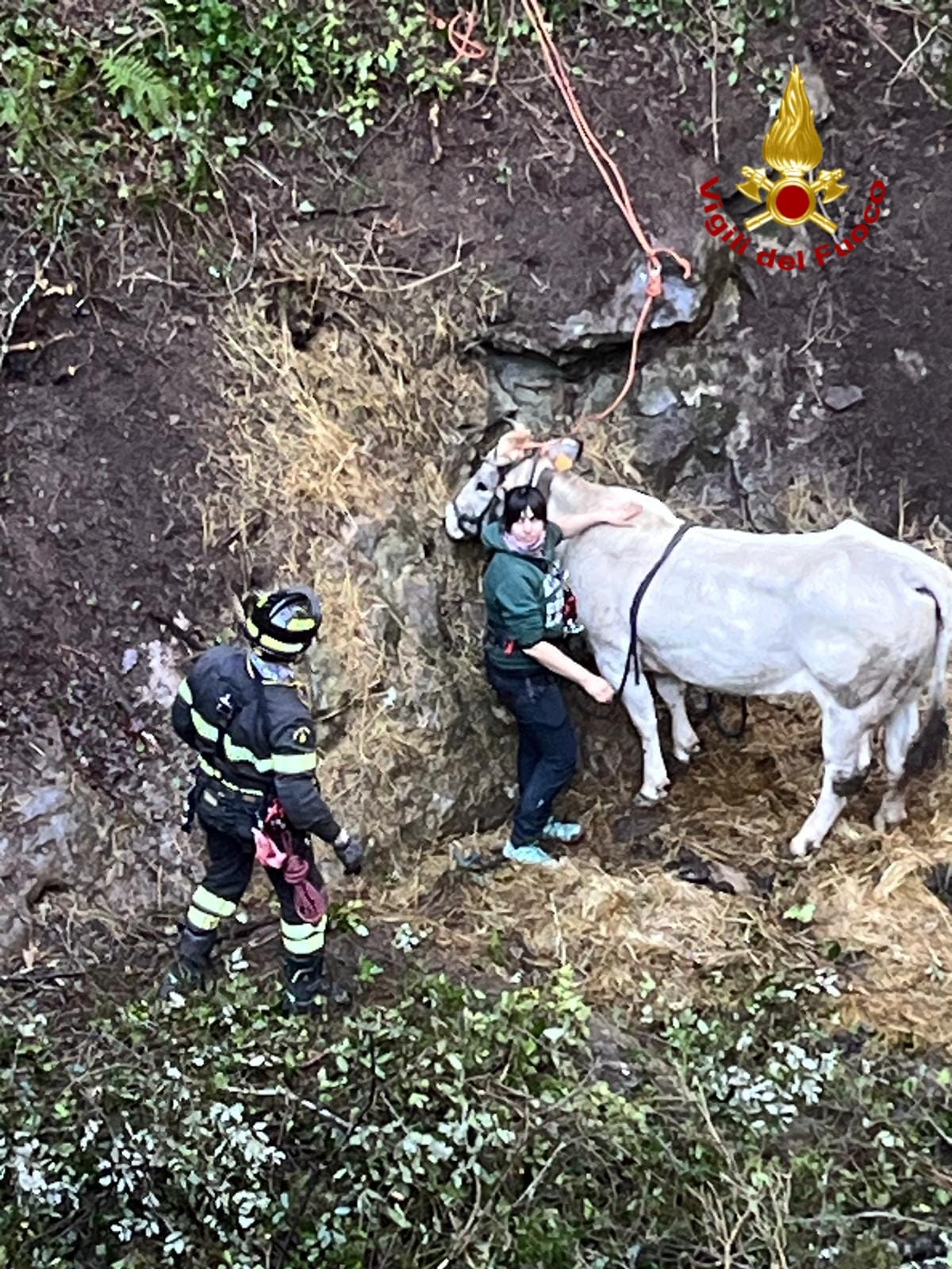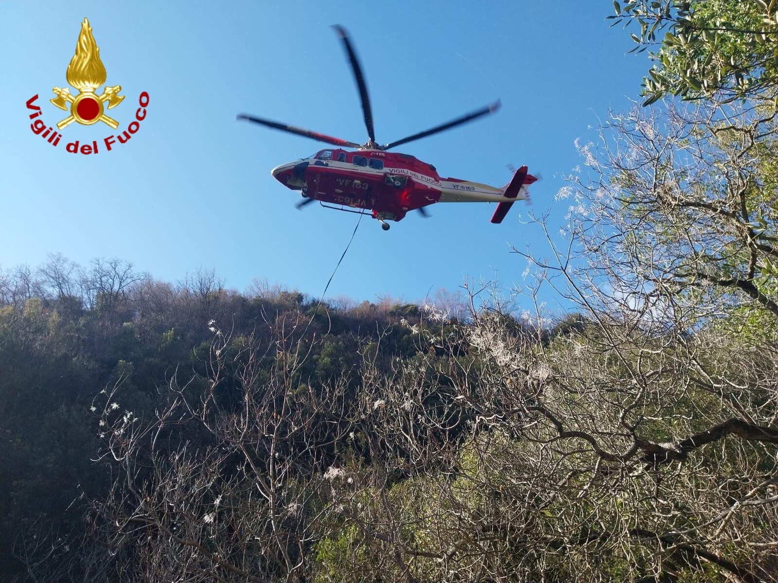 Nel corso della stessa giornata, l’elicottero Drago 163 del Reparto Volo dei Vigili del Fuoco Liguria ha effettuato un passaggio per definire le modalità operative. Nel frattempo, la squadra a terra ha provveduto a liberare l’area dagli alberi e dalla vegetazione per consentire l’accesso sicuro al velivolo. È stata inoltre accompagnata sul posto la veterinaria incaricata, che ha potuto verificare il buono stato di salute di Margherita.