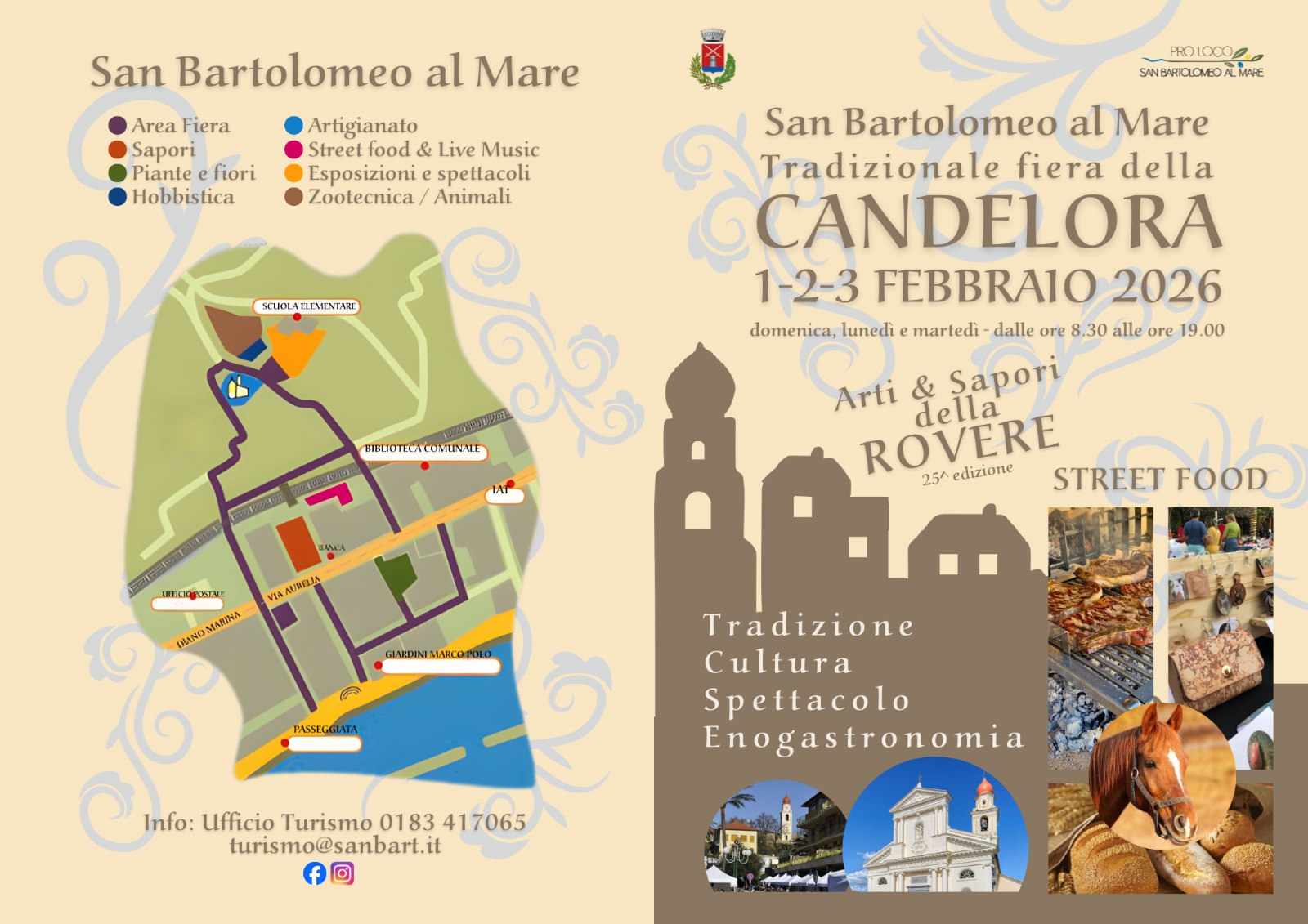 Dall’1 al 3 febbraio 2026 torna a San Bartolomeo al Mare la Fiera della Candelora, organizzata dal Comune e dalla Pro Loco.