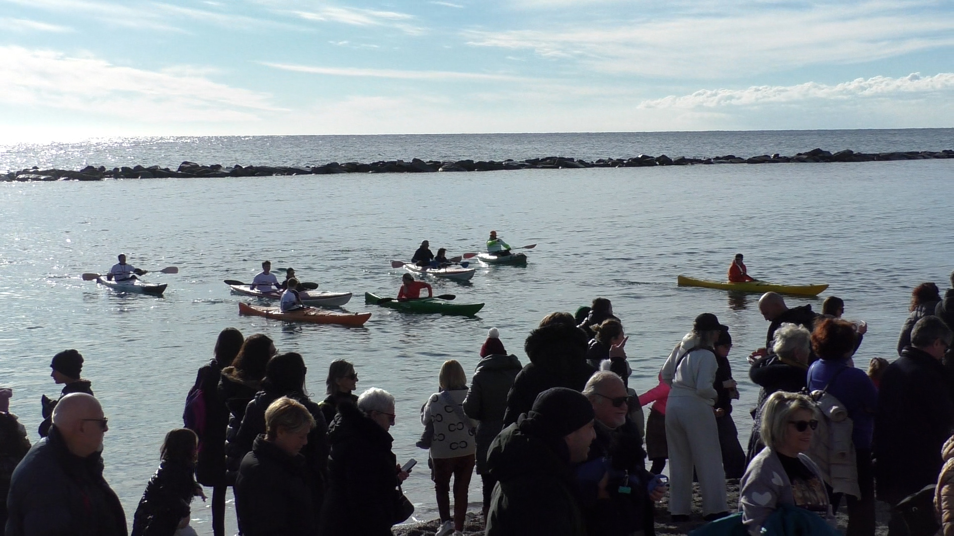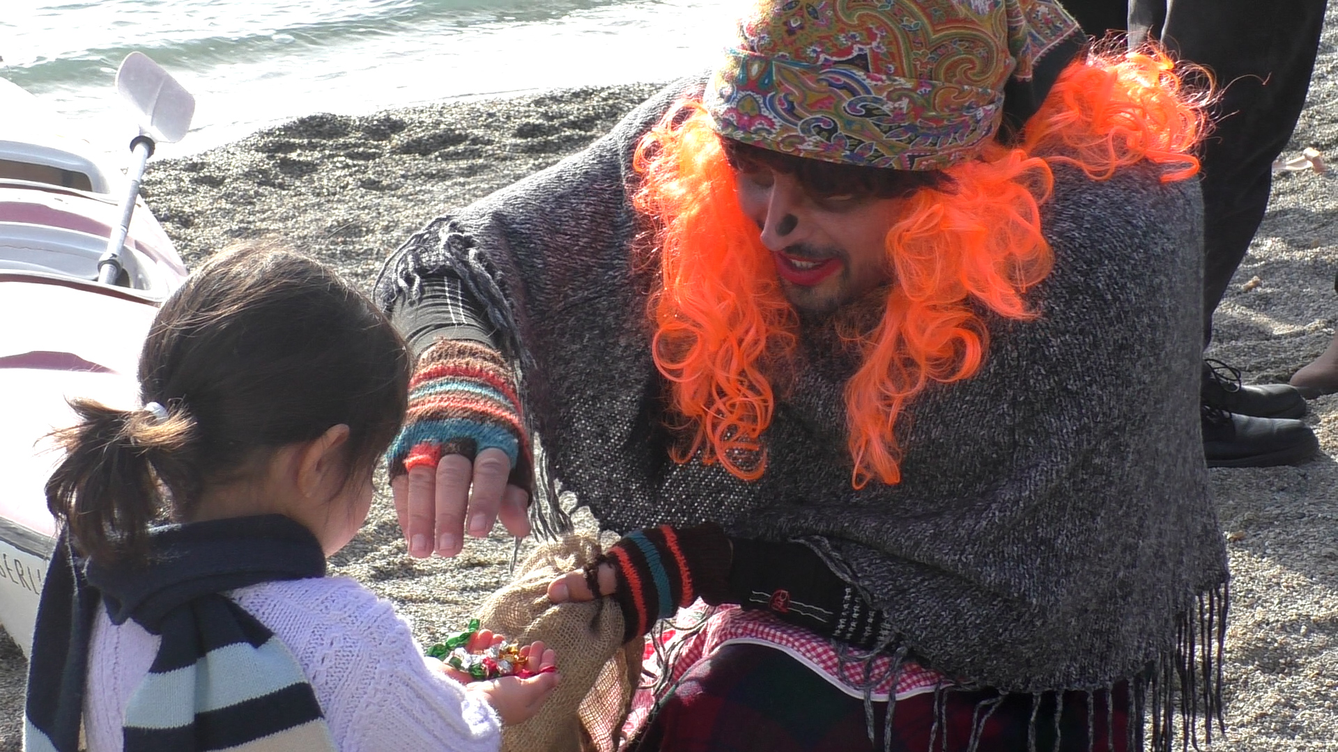 Poi la protagonista ha fatto la sua comparsa tra le onde: la Befana, in sella a una canoa, con la scopa, il sacco pieno di dolci e il tradizionale abito rattoppato, ha raggiunto la riva accolta dagli applausi dei presenti. Subito è partita la distribuzione di caramelle e piccoli gadget ai bambini assiepati lungo la spiaggia, felici di ricevere doni direttamente ‘dal mare’. A mezzogiorno spazio alla goliardia con il tradizionale ‘Cimento in mare della Befana‘: i coraggiosi partecipanti si sono lanciati nell’acqua per il tradizionale tuffo di inzio anno.