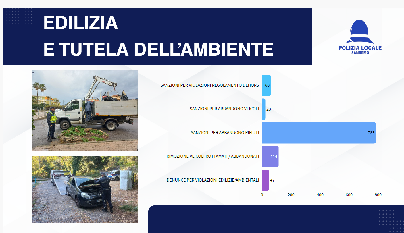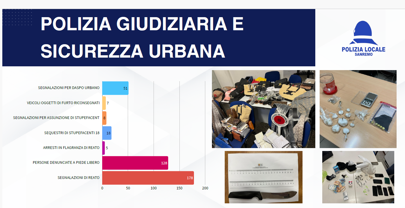 Nel corso dell’anno sono stati svelati i dati delle attività del corpo di poliza locale sanremese, che sono interamente consultabili nella gallery in fondo all’articolo.