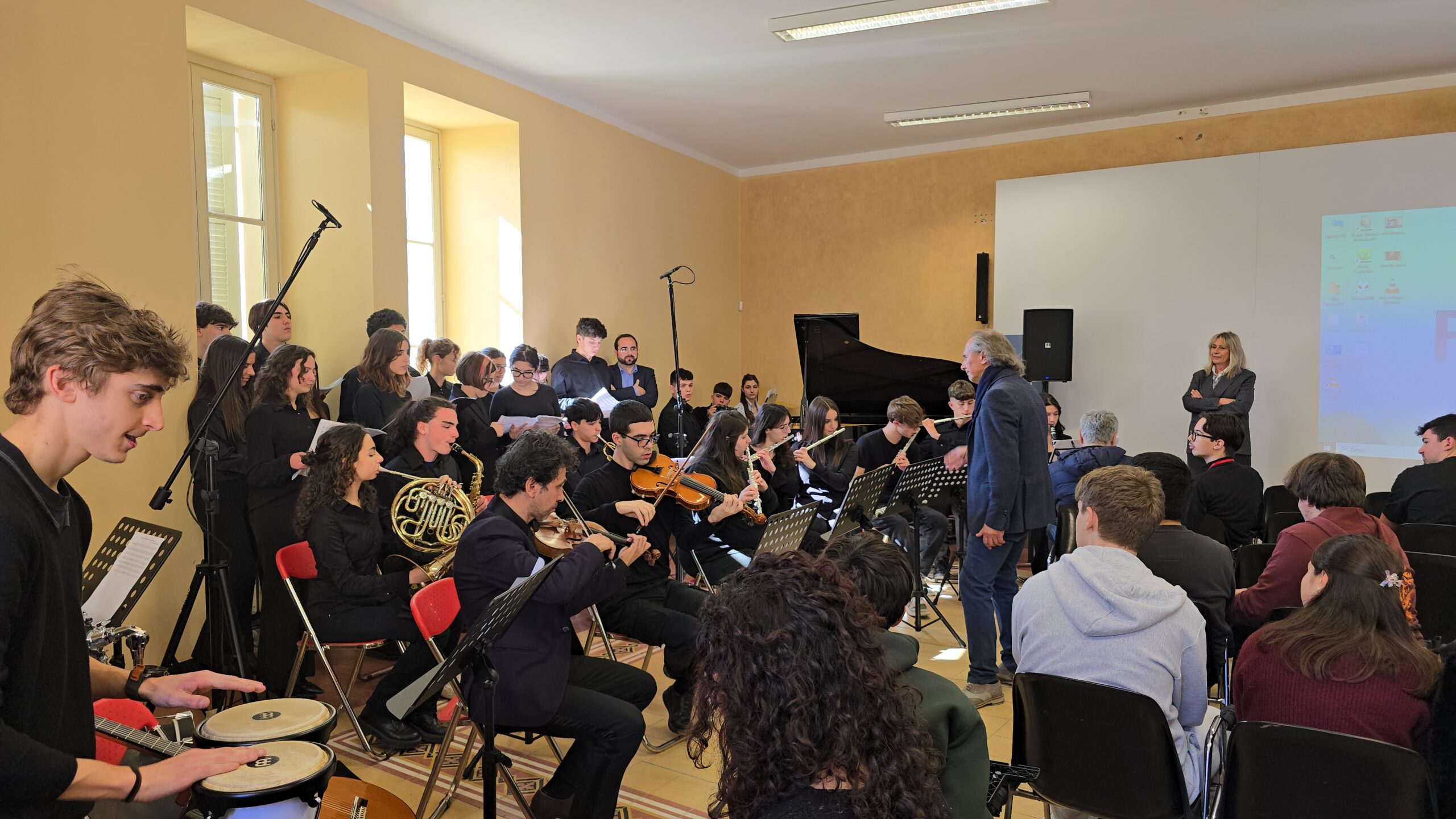 Durante la mattinata, il liceo ha anche reso omaggio al maestro Beppe Vessicchio, dedicandogli un’aula alla presenza della figlia Alessia Vessicchio.