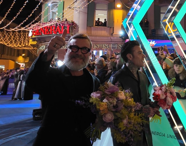 Dopo la presentazione del 76esimo Festival della Canzone Italiana nella Sala stampa e le prove generali che per tutto il pomeriggio di fronte a un folto pubblico di giornalisti hanno visto alternarsi i cantanti e i direttori d’orchestra, il culmine della giornata, come da tradizione è arrivato in serata quando la scena si è spostata da dentro l’Ariston all’esterno, questa volta però a favore di telecamera.
