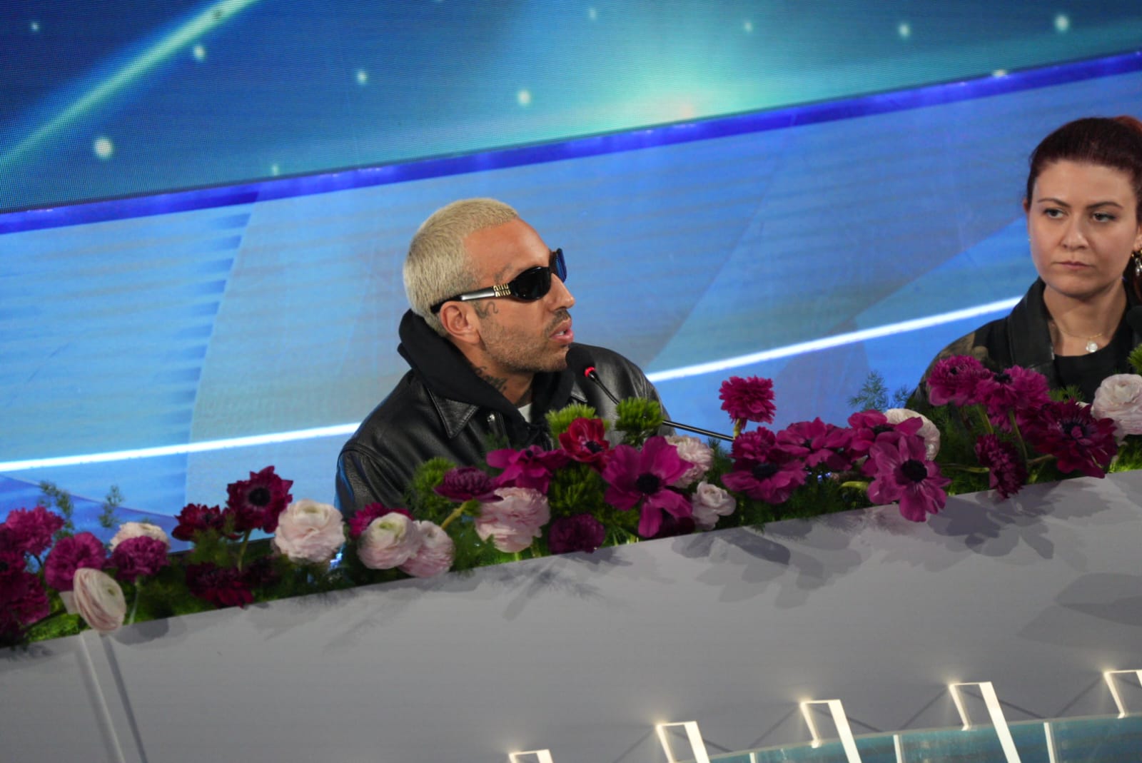 “Perché venire al Festival?” risponde a tal proposito il rapper “Vivo bene il confronto con la critica. Sfido chiunque a salire su quel palco e cantare come al karaoke. Essendo poi un rapper non mi definisco un cantante. Ci sono cantanti fin da piccoli che tremano quando ci salgono. L’autotune? Non c’è solo quello, ma ci sono 5 o 6 effetti che ne fanno un suono internazionale. Non vuole modificare un effetto vocale, ma ricercare un suono particolare. Ridurlo solo all’autotune non sarebbe giusto, è un lavoro di creatività. Sono sincero. Nella mia carriera ho fatto una gavetta lunghissima con numerosissime porte in faccia. Faccio musica e singoli che hanno certificato platino e sold out da una decina di anni, ma molti continuano a dirmi di no. Molti artisti al di là dell’età.”
