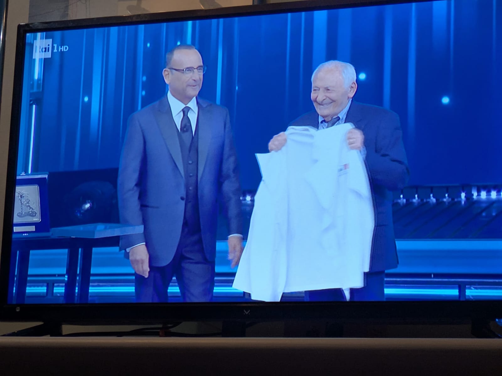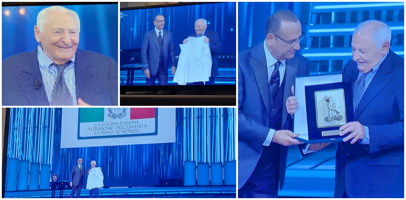 “Un pezzo di storia della musica italiana”, così il direttore artistico del Festival di Sanremo 2026, Carlo Conti, ha annunciato il grande Giulio Rapetti Mogol, insignito direttamente sul palco del Teatro Ariston del Premio alla Carriera Città di Sanremo.