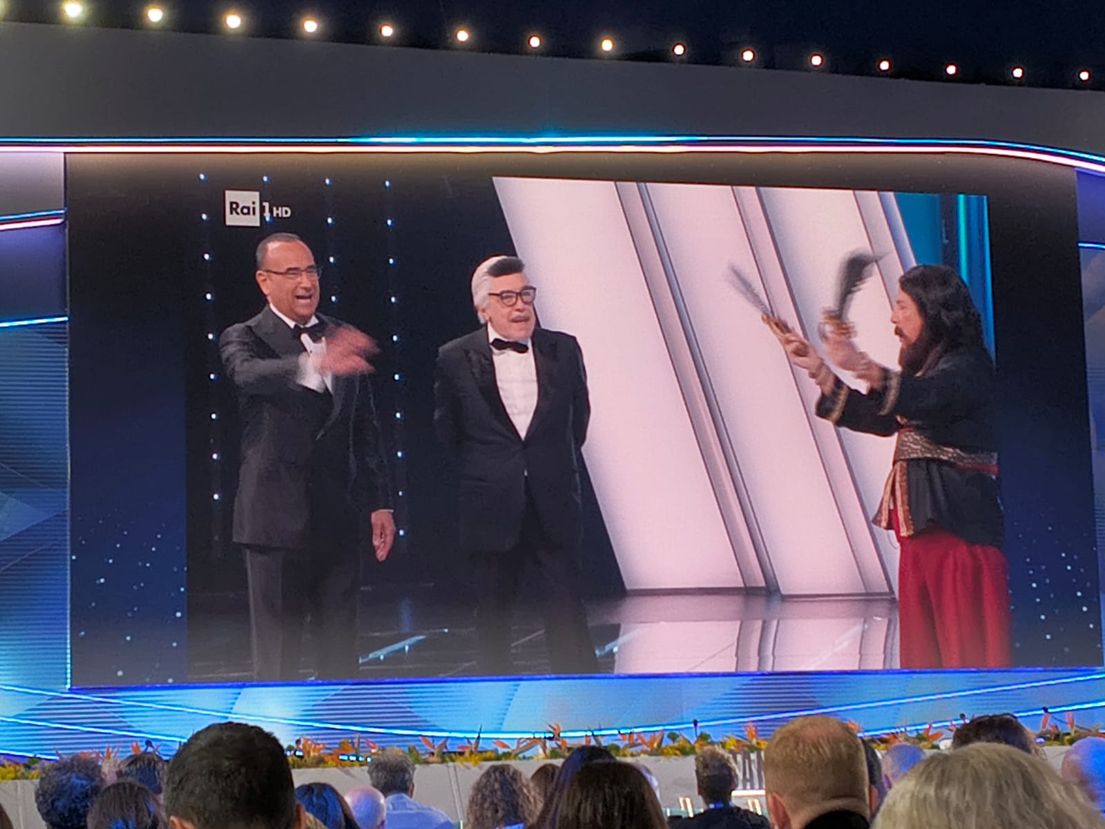Momento di leggerezza al Festival con un simpatico siparietto sulla scia dell’omaggio a “Sandokan” di Emilio Salgari, nel solco dello spazio che tradizionalmente la kermesse riserva alla comicità.