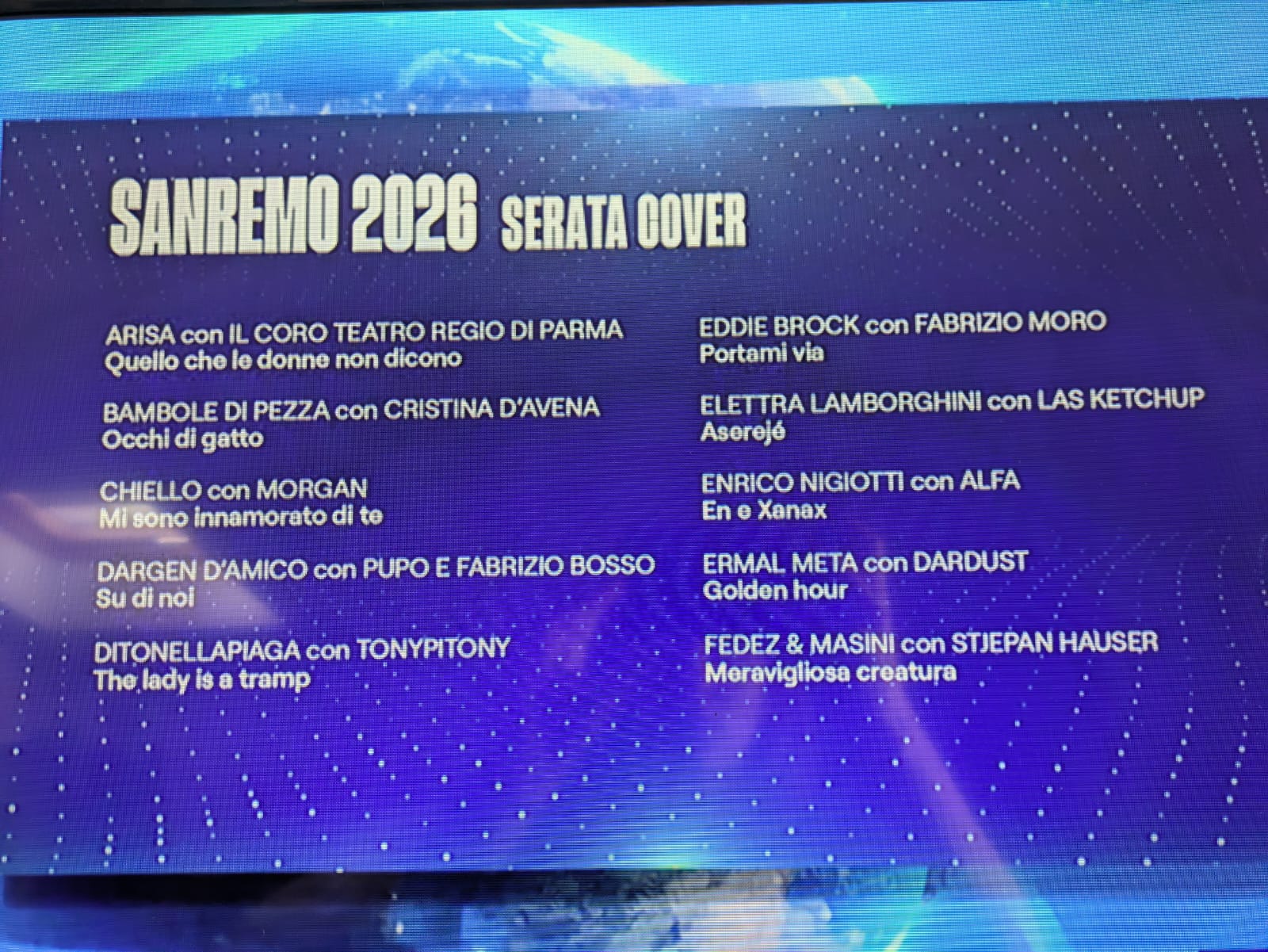 Manca sempre meno al Festival di Sanremo 2026 e oggi, al Tg1 delle 13:30, il conduttore e direttore artistico Carlo Conti ha svelato i duetti della serata cover, come giĂ aveva anticipato nei giorni scorsi.