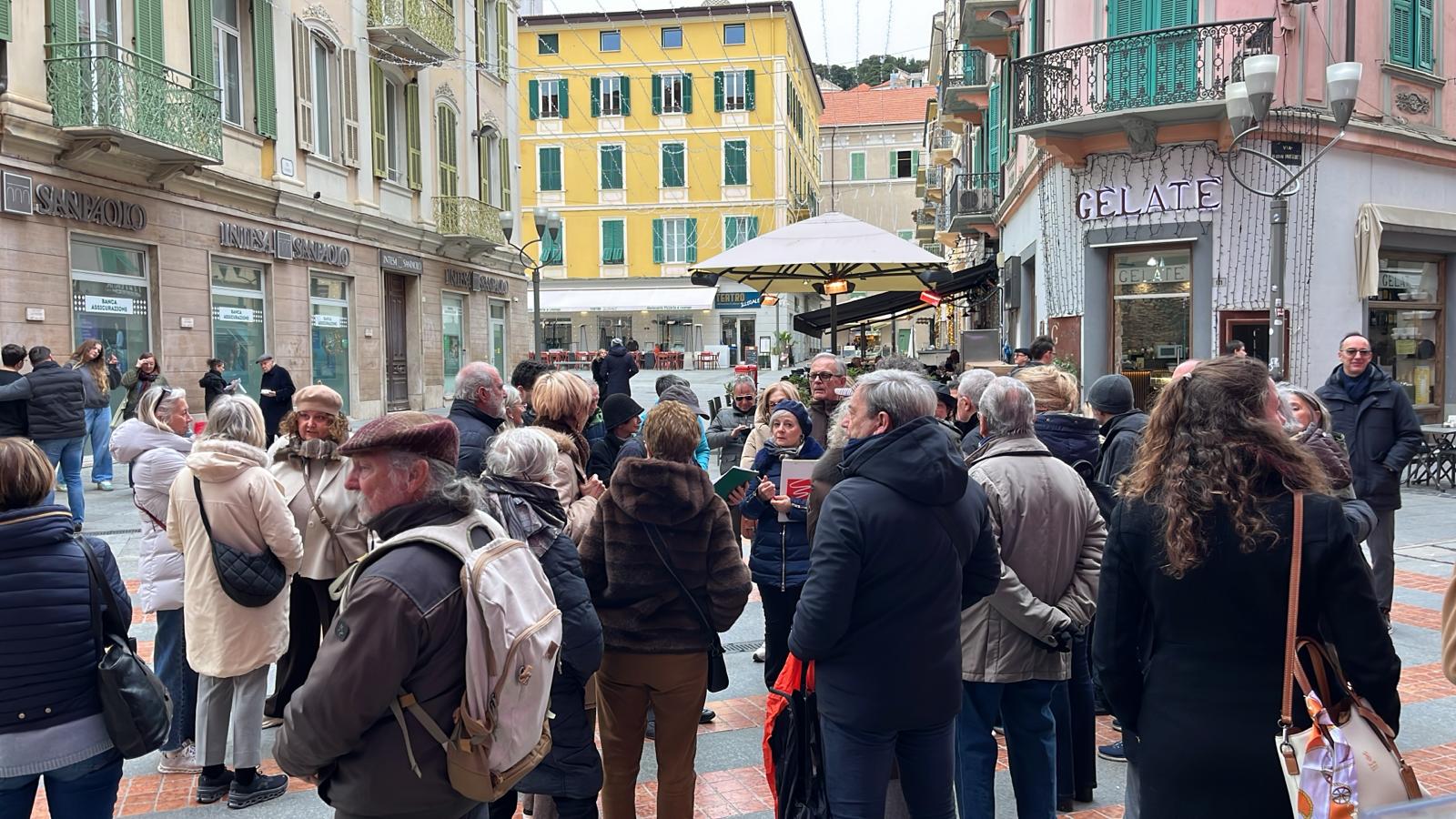 L’evento, guidato da Marco Macchi, ha registrato la partecipazione di molti cittadini, tra residenti e turisti, che hanno seguito l’itinerario tra i teatri storici della città partendo dall’Ariston in via Matteotti. La visita è poi proseguita nella piazza che un tempo ospitava il Teatro Principe Amedeo, al Teatro Centrale, al Teatro dell’Opera del Casinò e al Teatro Alfano.
