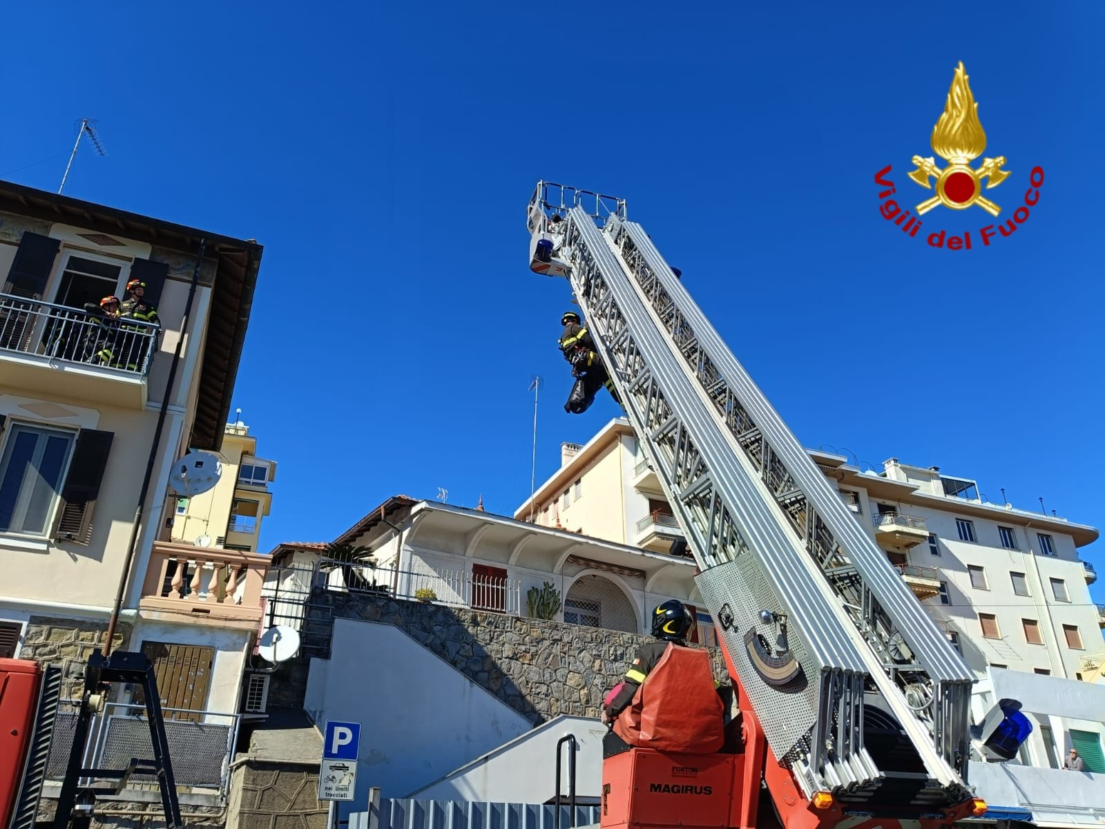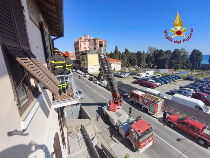 Sul posto è intervenuta una squadra dei Vigili del Fuoco del distaccamento di Sanremo, con il supporto dell’autoscala proveniente da Imperia, necessaria per facilitare le operazioni di accesso all’abitazione.