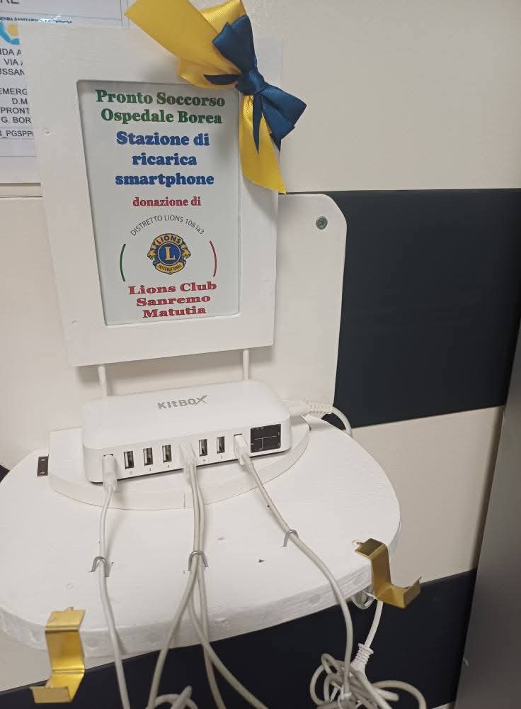Grazie alla donazione del Lions Club Sanremo Matutia, nella sala d’attesa del Pronto Soccorso dell’ospedale di Sanremo, a partire da oggi, ha trovato spazio un box multipresa. Questa “power box” sarĂ molto utile per tutti quegli utenti che, in attesa di notizie dei propri cari all’interno del Pronto Soccorso, avessero la necessitĂ di effettuare delle telefonate, pur avendo la batteria del proprio telefono cellulare scarica.