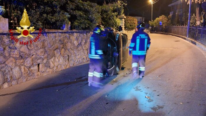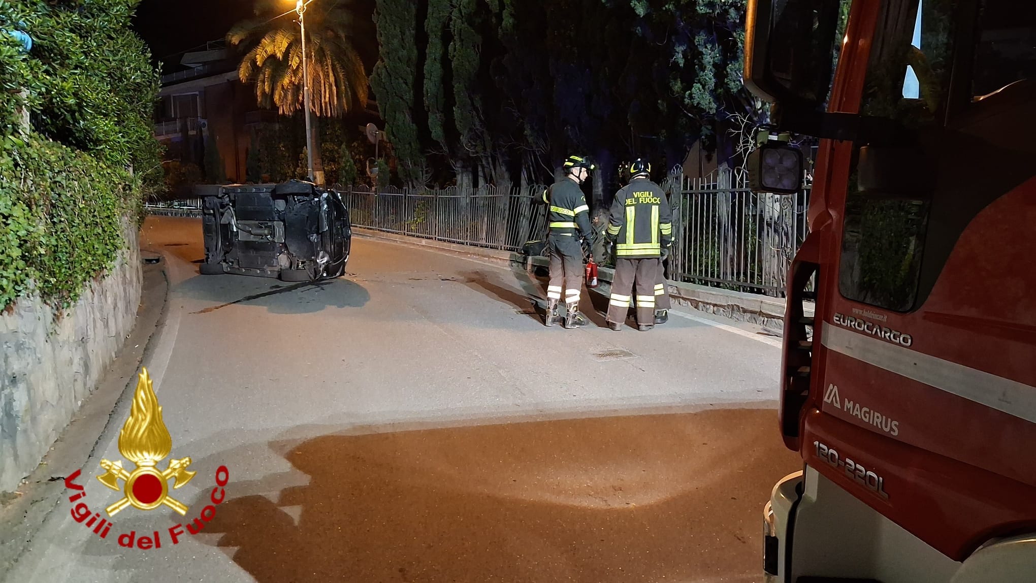 Questa notte, intorno alle 4.30, i Vigili del Fuoco del distaccamento di Sanremo sono intervenuti per un incidente stradale in via Duca d’Abruzzi. Una donna di circa 24 anni, alla guida della propria auto, ha perso il controllo del veicolo, che prima ha urtato una recinzione e poi si è ribaltato sulla carreggiata.