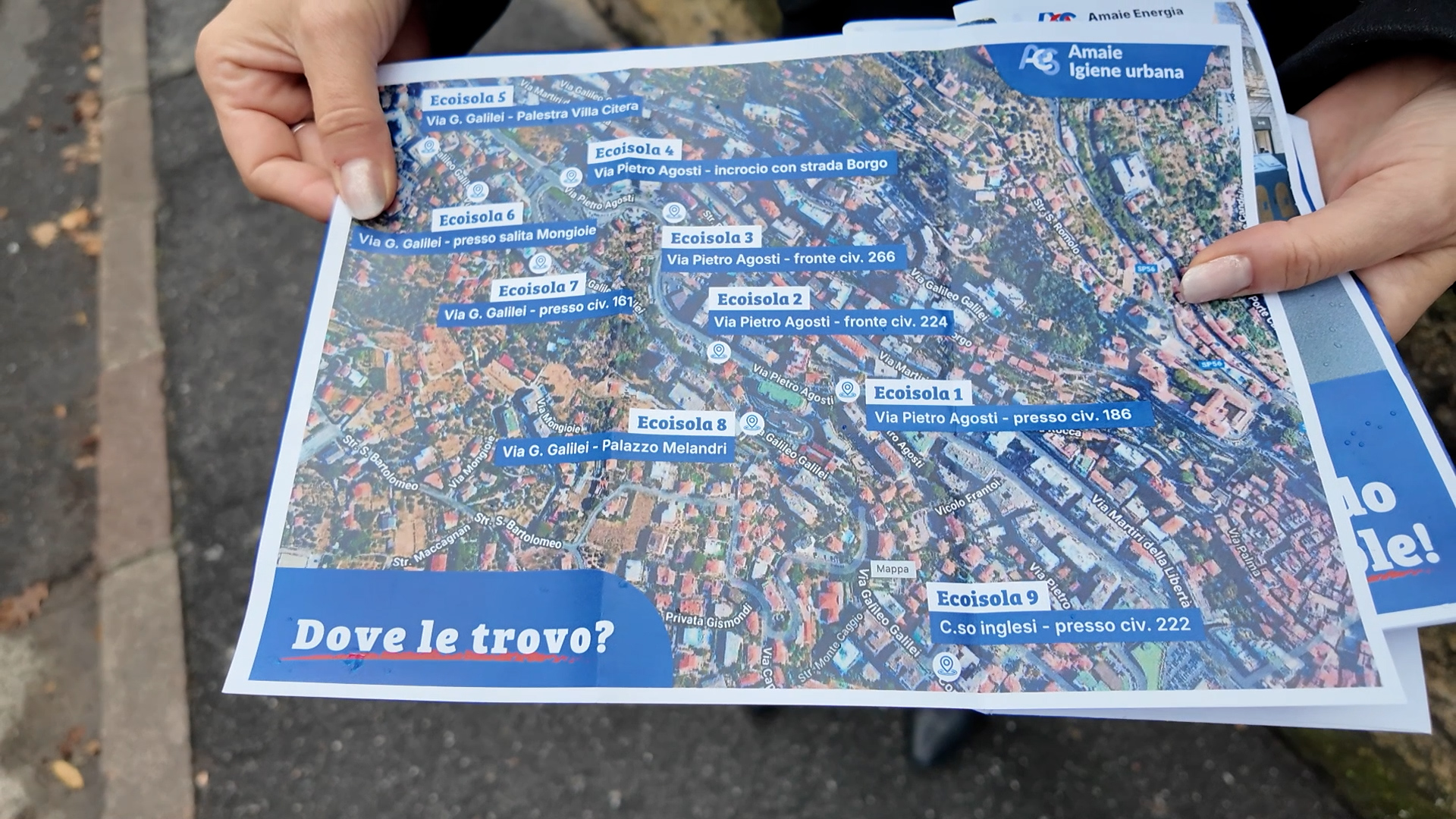 Le famiglie residenti stanno ricevendo a casa una lettera informativa contenente una mappa delle postazioni e un flyer con tutte le indicazioni operative. Sul retro del materiale informativo è presente anche la tessera personale, necessaria per conferire correttamente i rifiuti nelle eco isole.