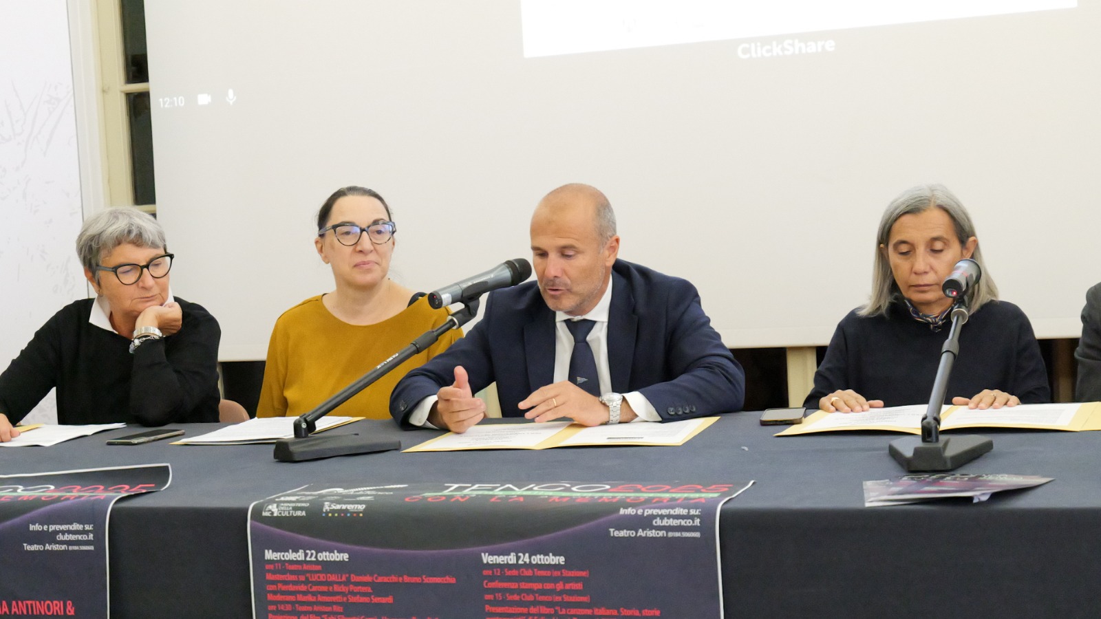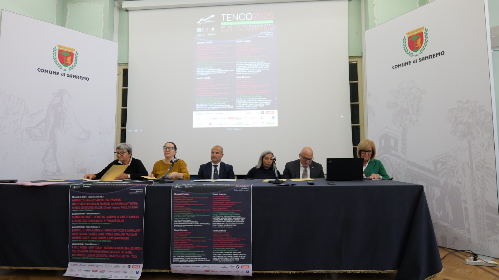 Graziella Corrent, direttore di produzione e responsabile amministrativo del Club Tenco, ha illustrato una serie di numeri: “Abbiamo una significativa ricaduta sul territorio e questa cosa ci fa molto piacere. I numeri rilevati stamattina parlano di 892 biglietti venduti online, quindi presumibilmente a persone provenienti da fuori Sanremo, e una media di 532 biglietti venduti al botteghino, quindi probabilmente residenti in provincia o comunque in Liguria. Noi ospitiamo circa 600 persone in tre giorni, che restano almeno due notti”.