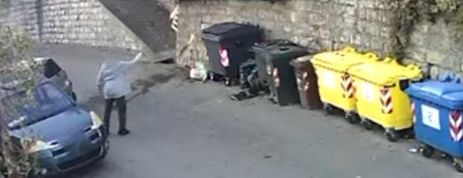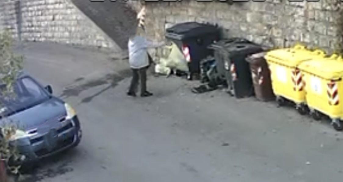 Un comportamento che viola le regole della raccolta differenziata e il divieto di abbandono dei rifiuti sul suolo pubblico.