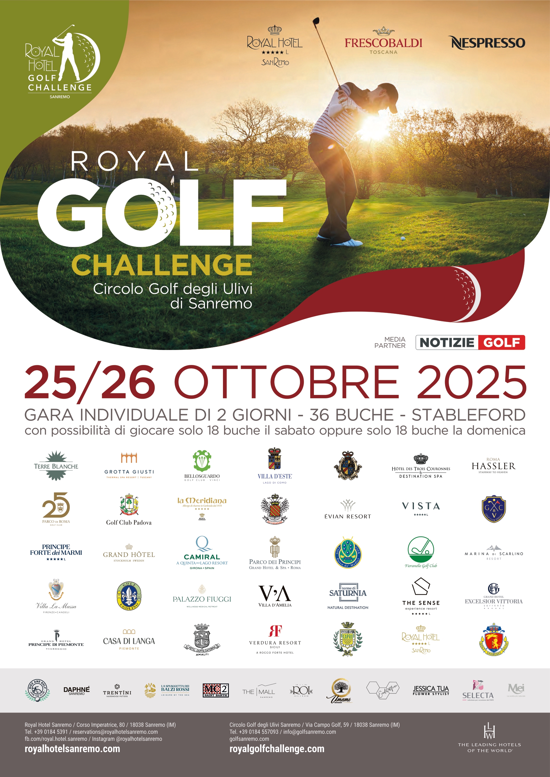 Sabato 25 e domenica 26 ottobre avrĂ luogo lâedizione 2025 della prestigiosa gara “Royal Golf Challenge” al Circolo Golf degli Ulivi di Sanremo.