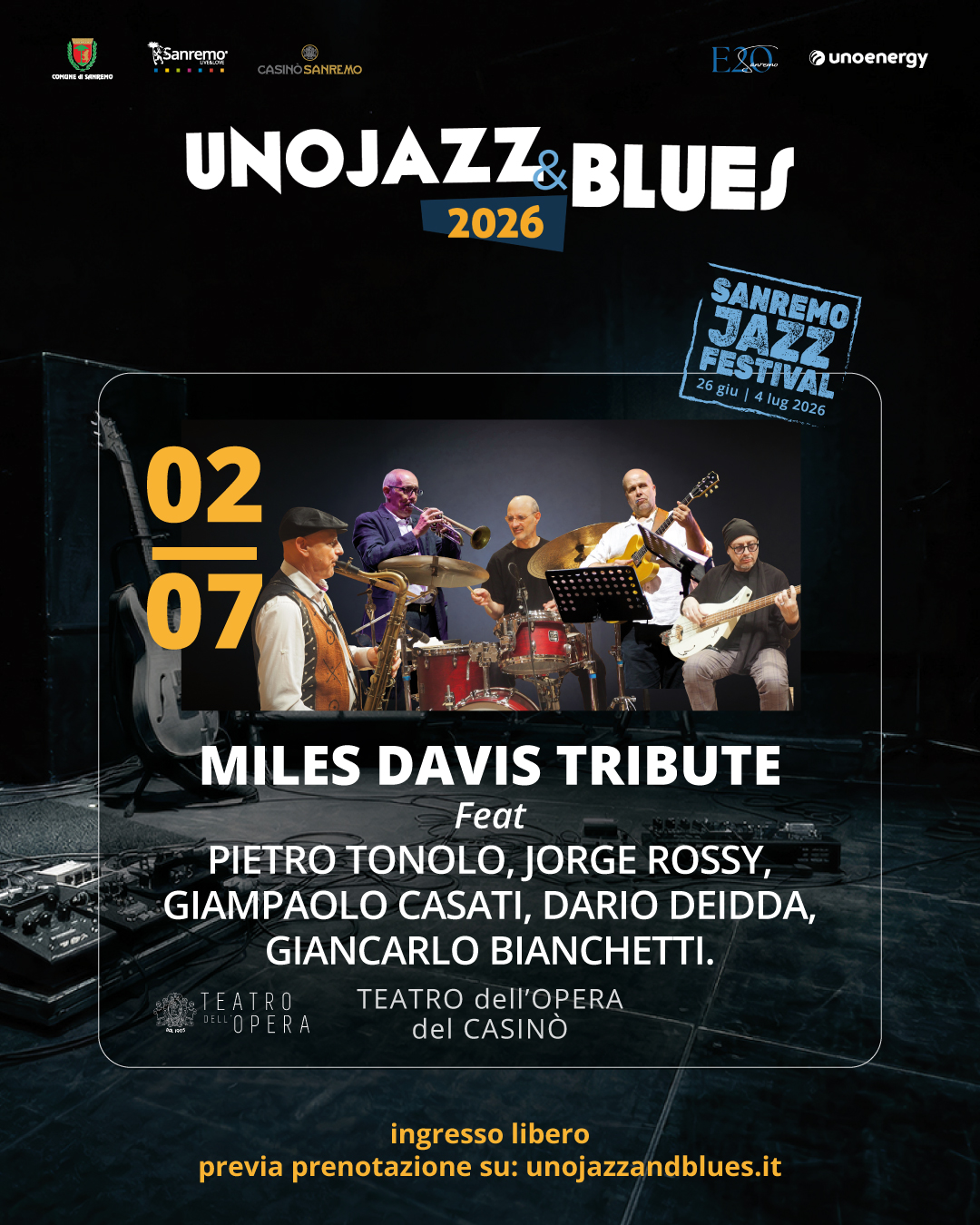 UnoJazz&Blues, l’attesissimo Festival musicale organizzato da E20Sanremo con il sostegno di Unoenergy, si prepara a tornare protagonista a Sanremo con un’edizione completamente rinnovata che coinvolgerà l’intera città in un vero e proprio Festival del Jazz diffuso.