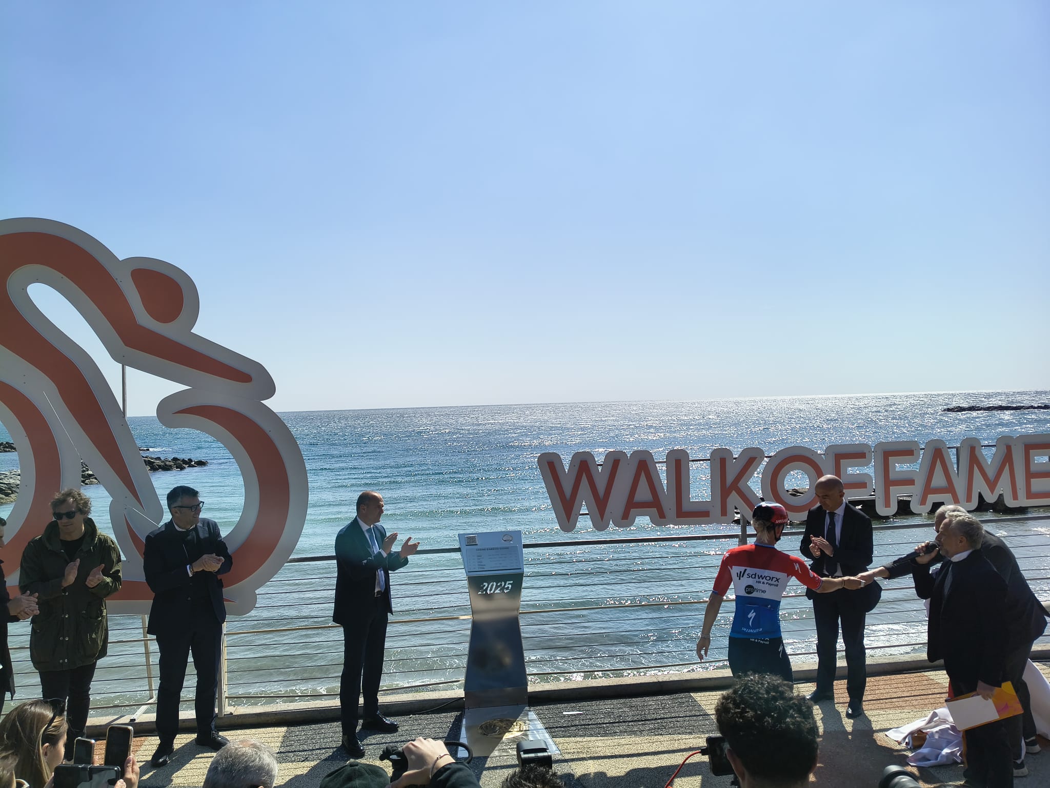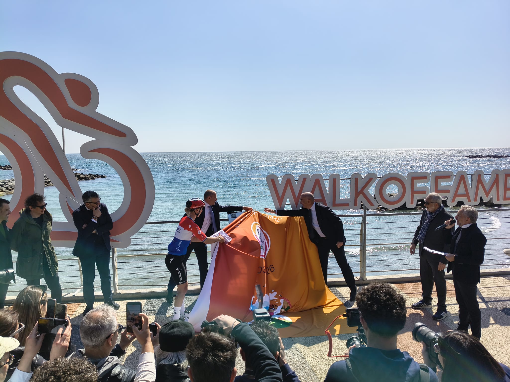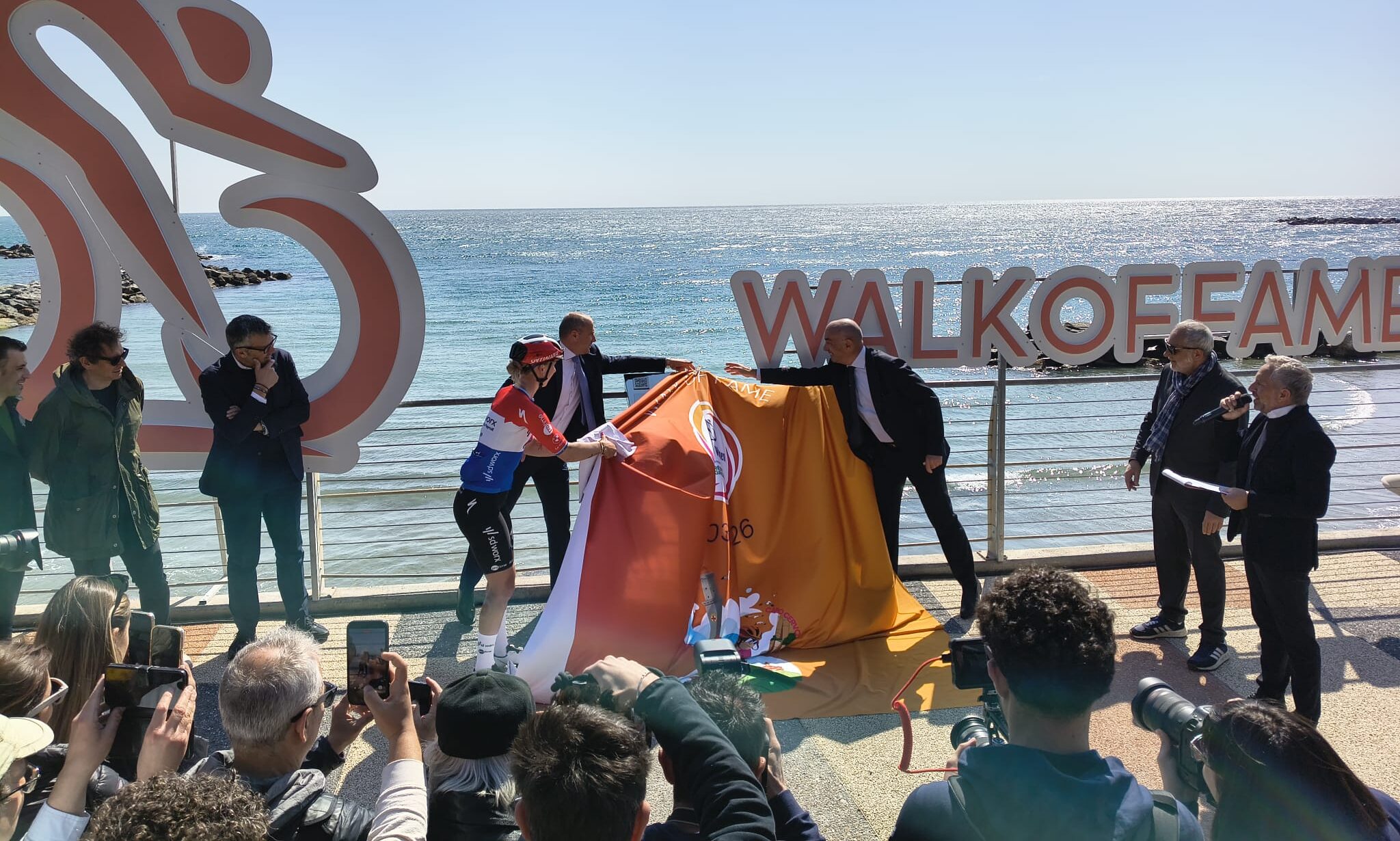 Quest’anno si è rafforzato ulteriormente il legame tra RCS Sport e il Comune di Sanremo con un’iniziativa destinata a lasciare il segno, in tutti i sensi. È stata infatti inaugurata stamani la “Walk of Fame”, la passerella delle stelle dedicata ai grandi protagonisti della Milano-Sanremo, simbolo del ciclismo italiano nel mondo.