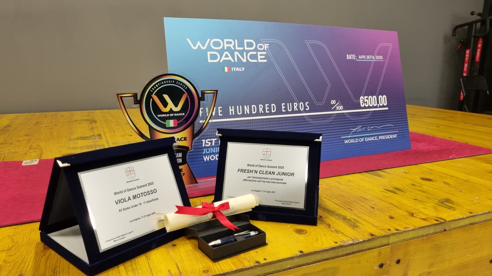 L’assessore regionale alla Programmazione FSE Marco Scajola ha premiato questo pomeriggio i giovani talenti della palestra Creativa di Imperia – la crew Fresh’n Clean Junior – reduci dal World of Dance Summit di Los Angeles, uno degli appuntamenti internazionali più prestigiosi dedicati alla street dance, andato in scena dal 17 al 21 luglio 2025.