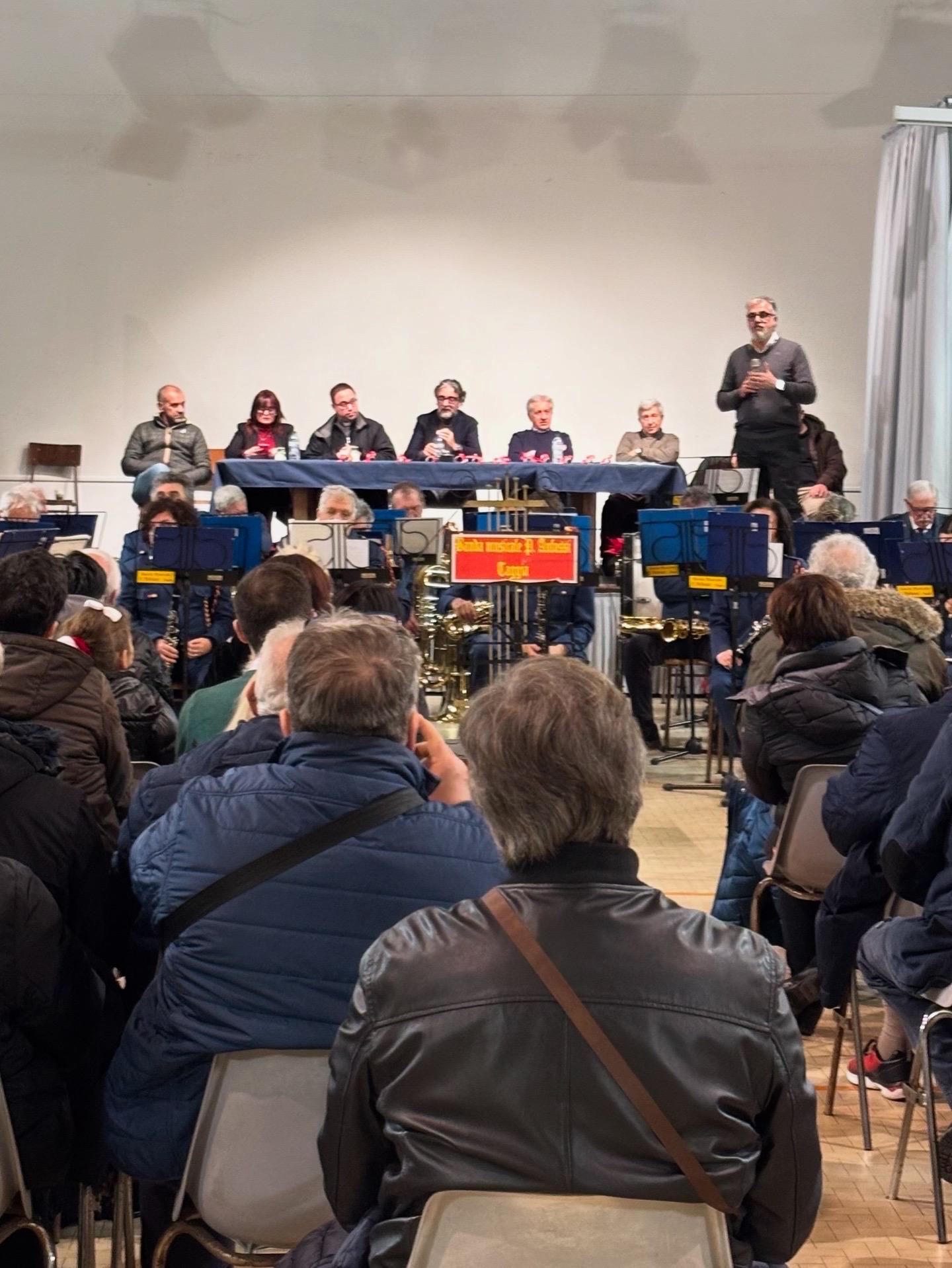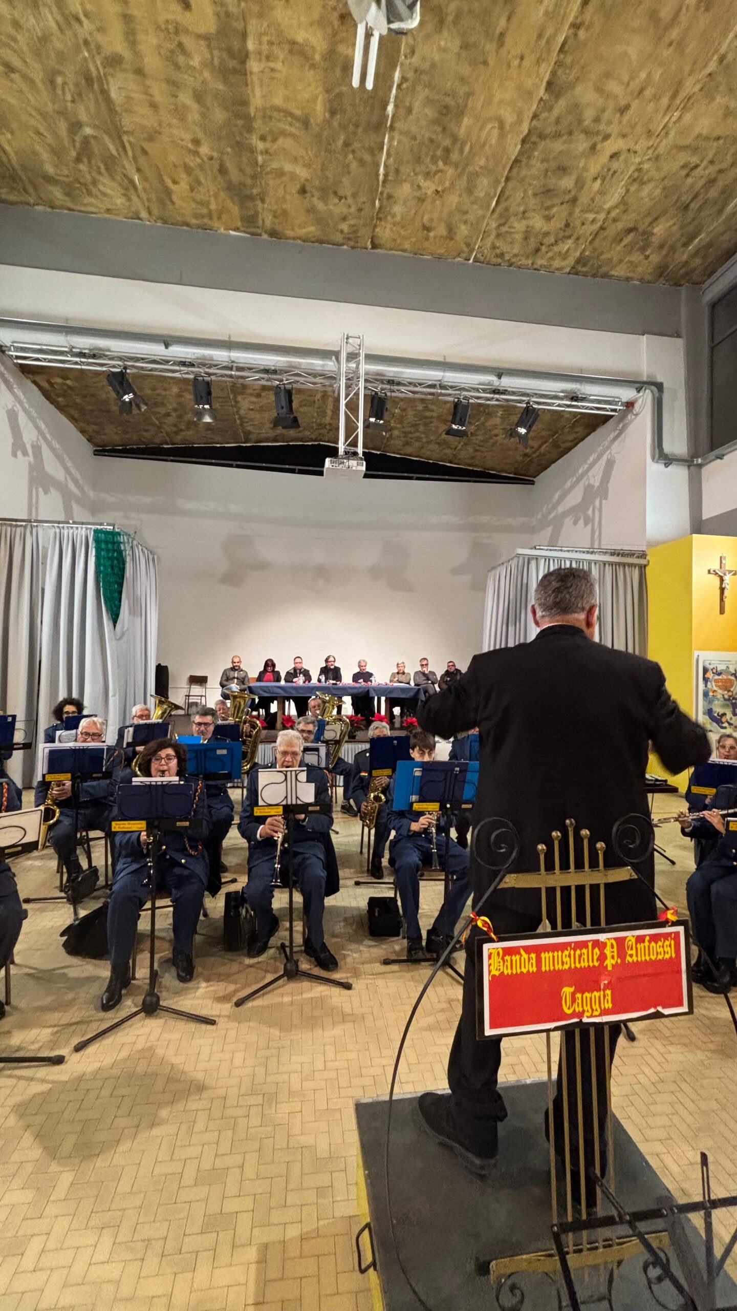 La serata si Ăš aperta con il tradizionale concerto di Natale della Banda Pasquale Anfossi, diretta dal maestro Vitaliano Gallo, che ha accompagnato i presenti con un repertorio di brani natalizi.