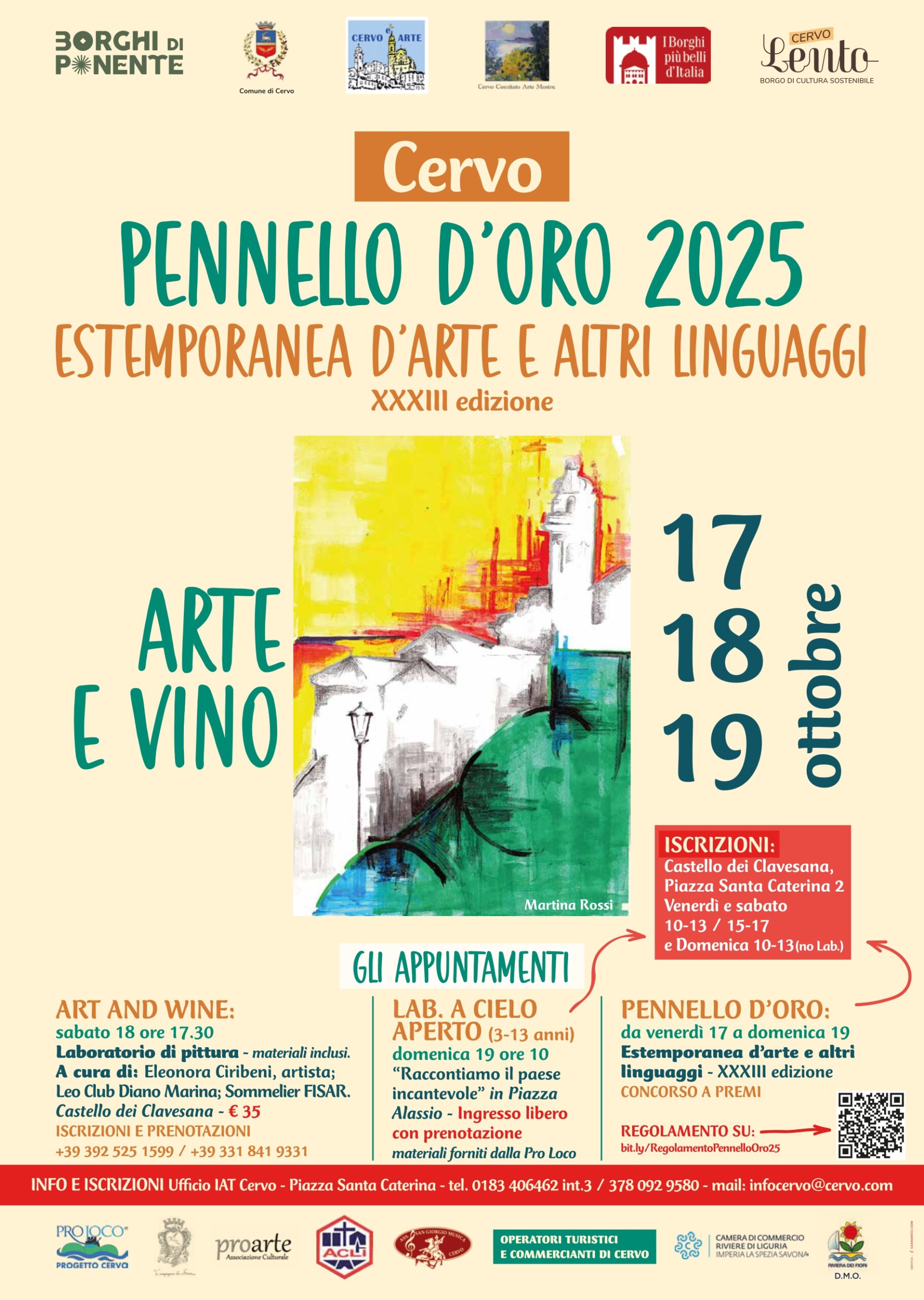 Si rinnova il tradizionale “Pennello d’Oro”, la rassegna di pittura che nei primi giorni di settembre anima i carruggi e le piazze di Cervo. Quest’anno, in programma dal 17 al 19 ottobre, l’evento amplia i suoi orizzonti: non più solo pittura, ma anche fotografia, scultura e altri linguaggi dell’arte contemporanea.