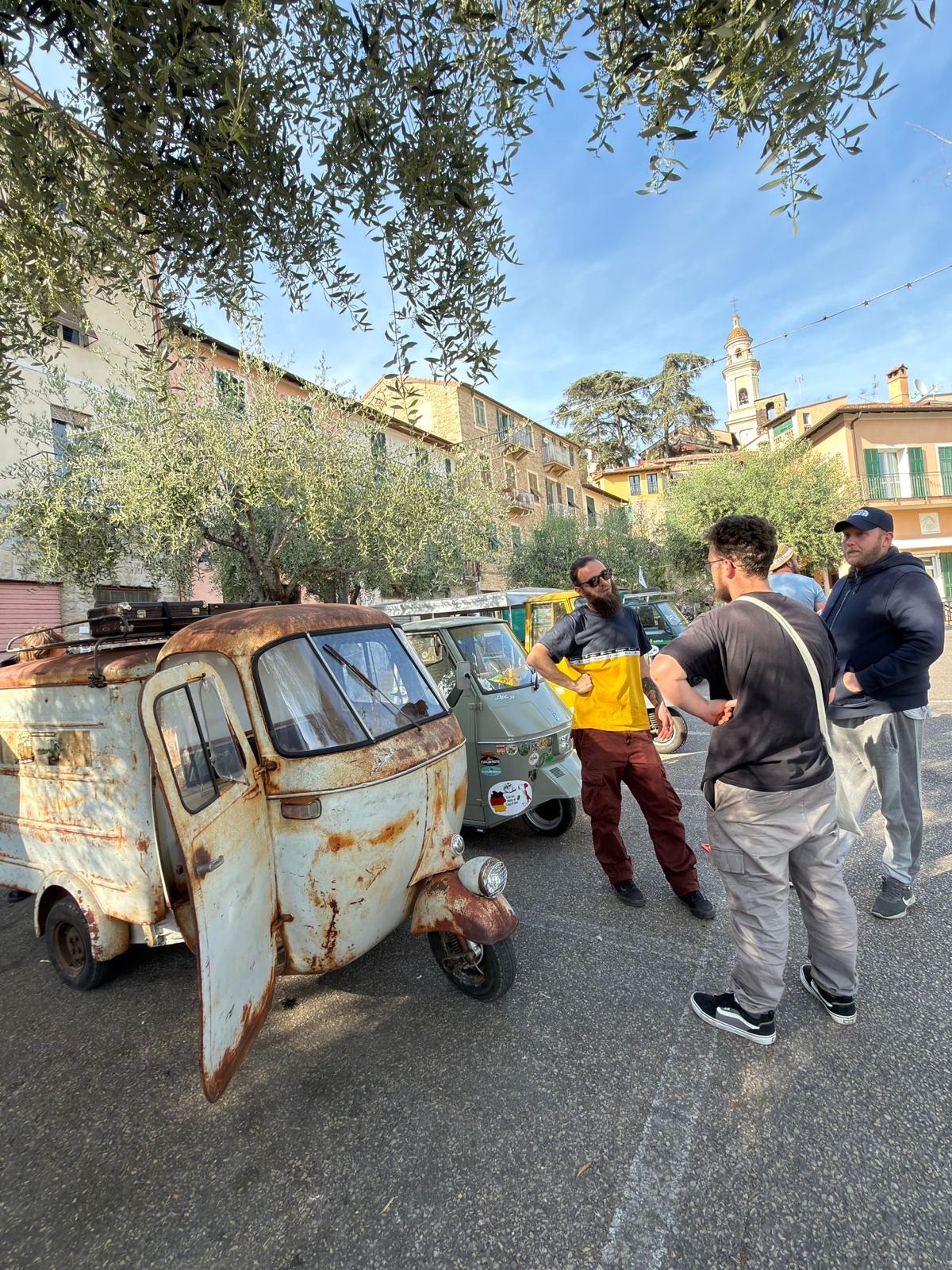 Domenica 19 aprile il programma si è spostato sulla strada. La ApeParade ha dato vita a un serpentone di circa un chilometro di veicoli, che ha attraversato la Riviera fino a Seborga, tra panorami aperti e passaggi continui. L’arrivo in piazza è stato uno dei momenti più intensi: la presenza dell’amministrazione comunale, l’accoglienza di S.A.S. la principessa Nina Menegatto e il colpo di cannone hanno segnato un passaggio particolarmente significativo.