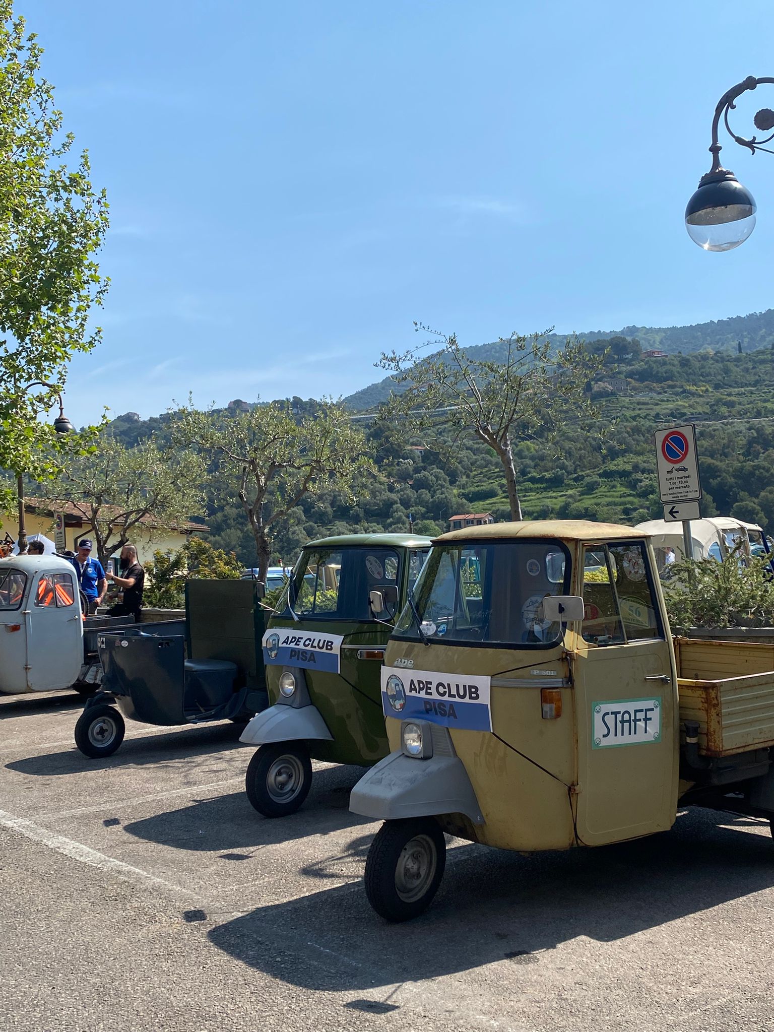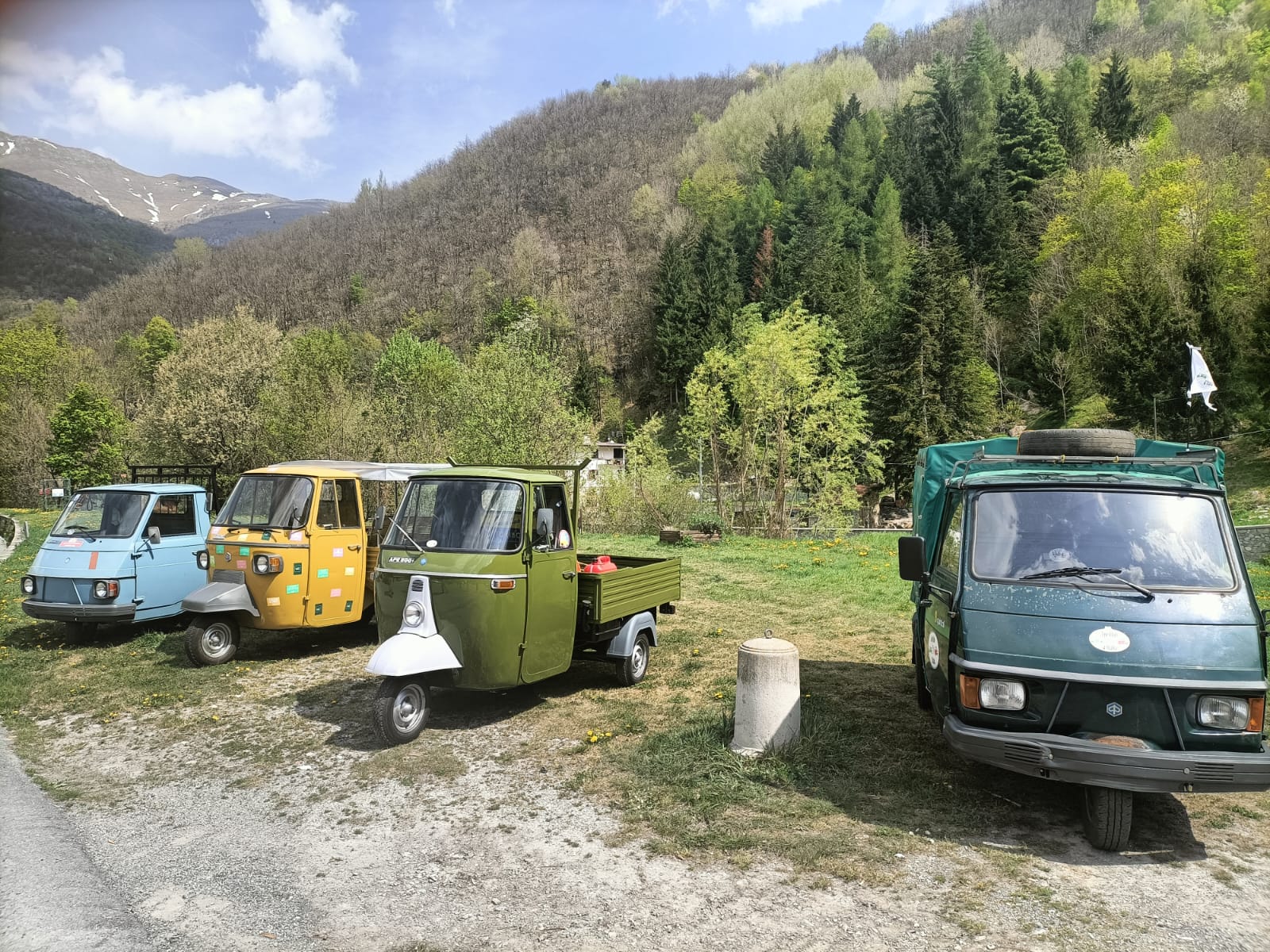 Il percorso si è poi concluso a Camporosso, dove, grazie alla disponibilità del sindaco Davide Gibelli, gli apisti sono stati accolti nello spazio eventi comunale per il pranzo finale, con le Ape disposte intorno all’area.
