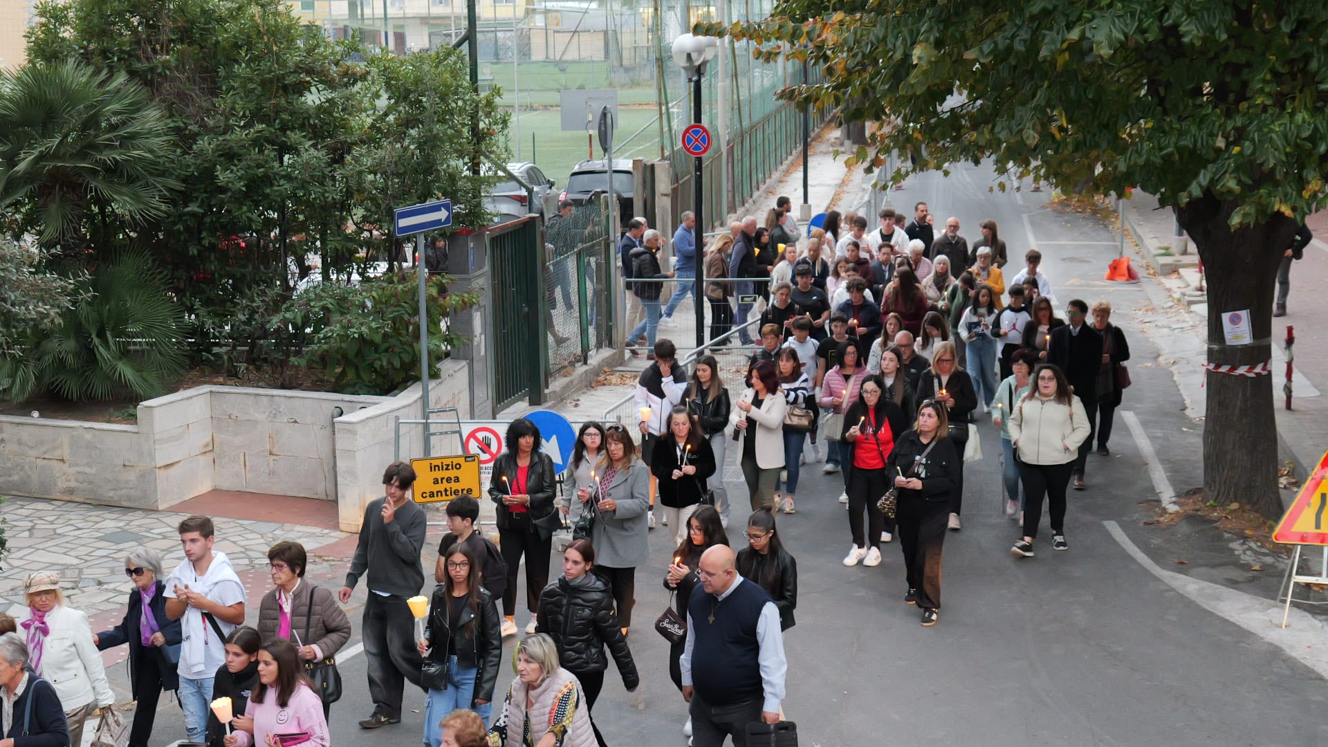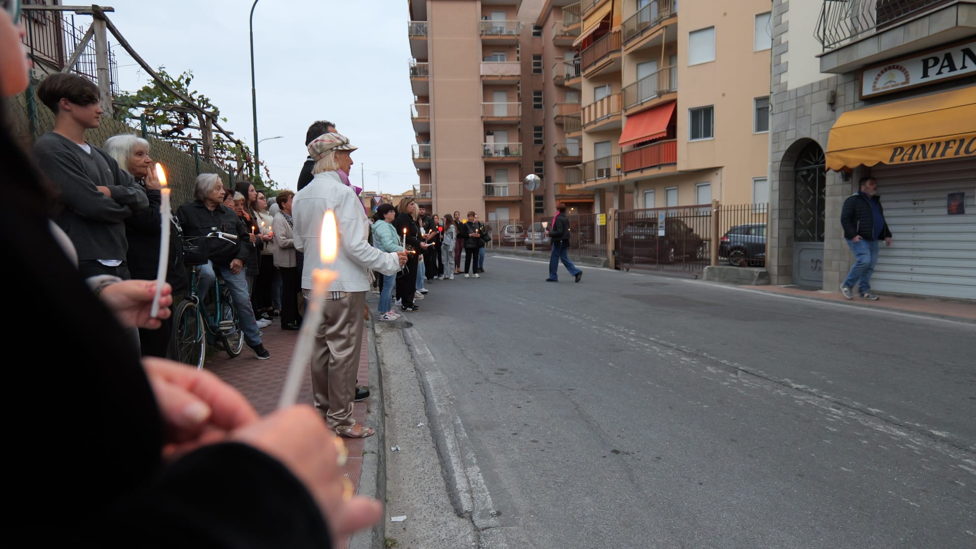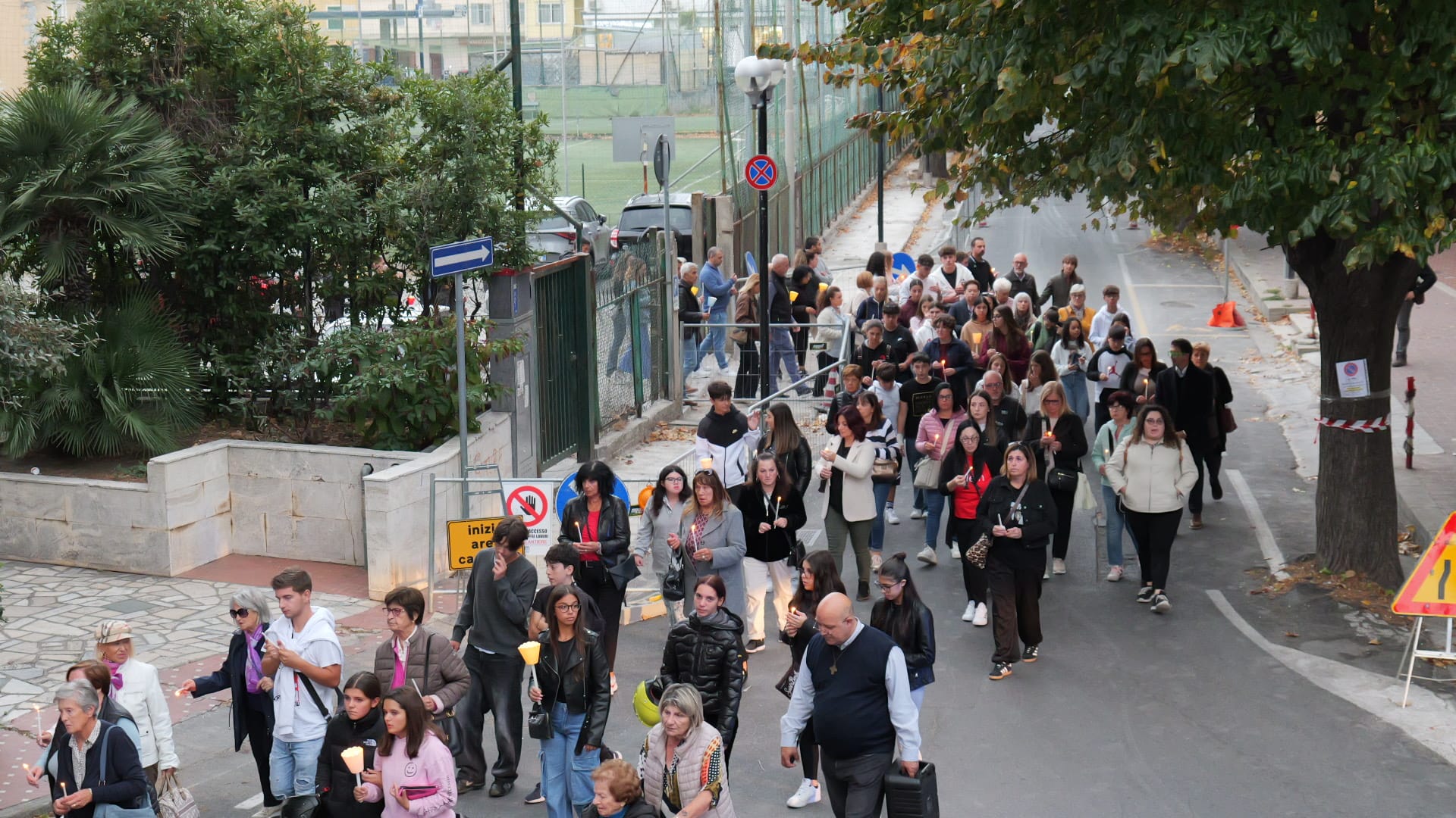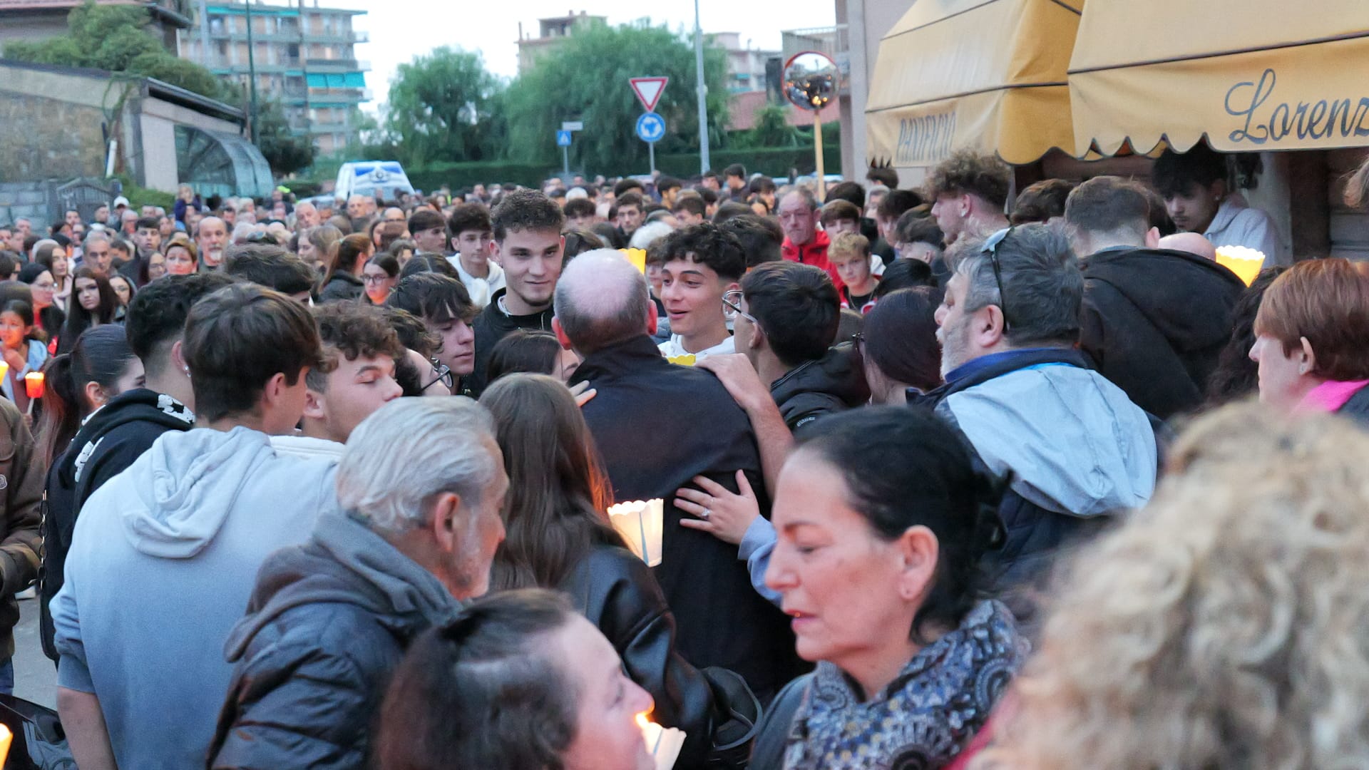 Una folla commossa si è radunata davanti alla parrocchia di Vallecrosia per poi procedere in silenzio lungo via Don Bosco e la via Romana, fino a raggiungere l’abitazione della ragazza, in un corteo illuminato dalle fiaccole e carico di emozione.