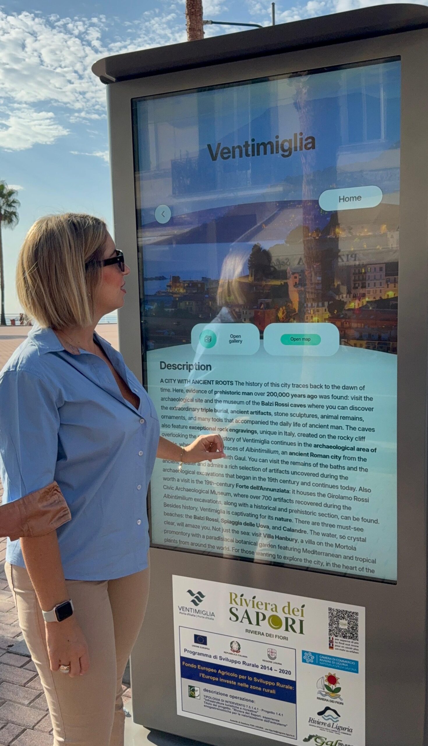 “Ringrazio la DMO Riviera dei Fiori, di cui ho l’onore di essere Vicepresidente, per aver scelto Ventimiglia, insieme a Imperia e Sanremo, come una delle destinazioni per l’installazione del nuovo Totem interattivo – dichiara l’assessore al Turismo, Serena Calcopietro. – Uno strumento innovativo che consentirà a cittadini e turisti di conoscere in modo semplice, immediato e digitale le bellezze, le eccellenze e le specialità del nostro territorio. Questo progetto rientra in un più ampio piano di comunicazione turistica digitale, volto a semplificare l’accesso alle informazioni e a rafforzare la vicinanza delle istituzioni alle persone”.