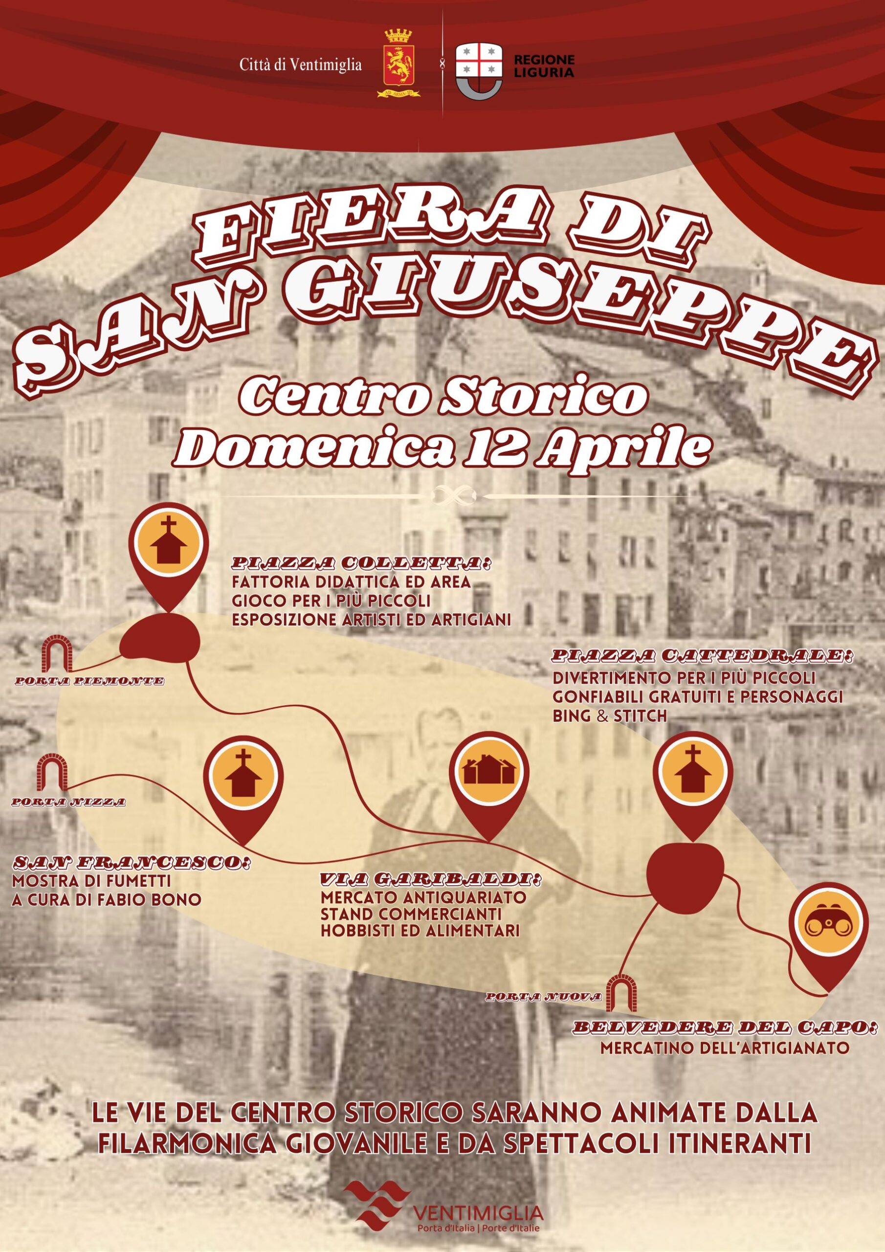 Il centro storico di Ventimiglia si prepara ad accogliere cittadini e visitatori in occasione della tradizionale fiera di San Giuseppe, in programma domenica 12 aprile, a seguito del rinvio per maltempo della precedente data di domenica 22 marzo, con un ricco calendario di eventi distribuiti nell’arco dell’intera giornata.