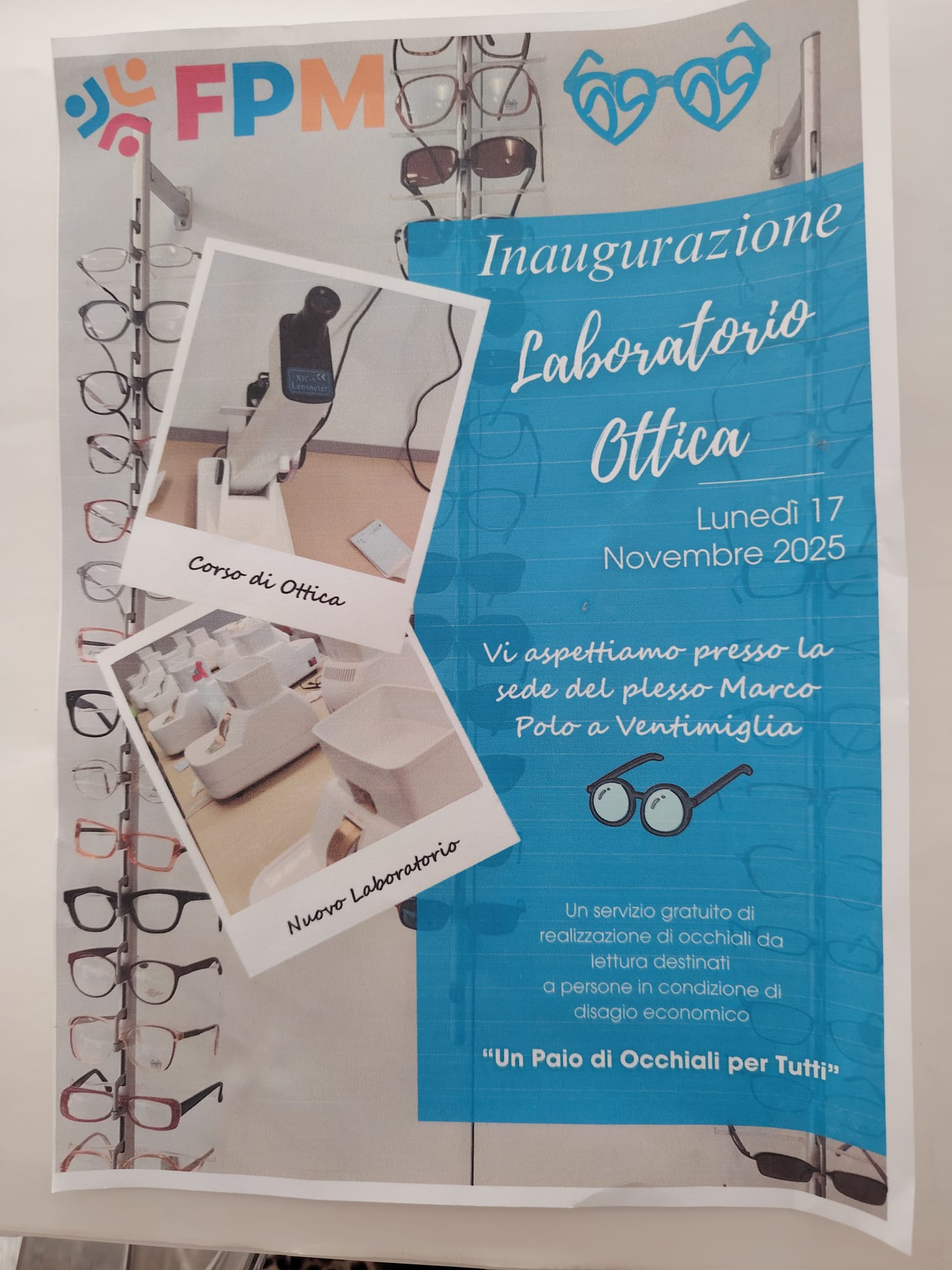 Il progetto rientra nell’iniziativa “Un Paio di Occhiali per Tutti”, promossa dall’indirizzo Ottico in collaborazione con il Settore Politiche Sociali del Comune di Ventimiglia, con il sostegno di BANCO BPM Ventimiglia Ag. 1 e Lions Club Italia. L’iniziativa prevede la realizzazione gratuita di occhiali da lettura destinati a cittadini in difficoltà economica, individuati e segnalati dai servizi sociali del Comune. Il Lions Club ha donato 900 montature e 900 lenti graduate per supportare gli studenti nell’apprendimento di questo mestiere qualificante.