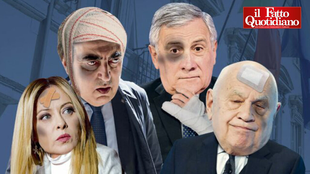 “Viene giù tutto”. Queste sole 3 parole, questo titolo scritto a caratteri cubitali con vignetta grande nella pagina di copertina con foto del Presidente del Consiglio Giorgia Meloni (FdI), del vicepresidente del Consiglio e ministro degli Affari Esteri e della Cooperazione italiana Antonio Tajani, insieme al dimissionario capogruppo al Senato, Maurizio Gasparri (entrambi Forza Italia-Berlusconi), del ministro della Giustizia Carlo Nordio (FdI, prima tessera Partito liberale) incerottati, occhi neri, malconci, tristi, da stamane in tutte le edicole italiane pubblicati da “Il Fatto Quotidiano” di Marco Travaglio, sintetizzano meglio di 100 pagine e lunghi discorsi dei soliti bla-bla-bla di turno il caos politico, l’imbarazzante e tragica situazione amministrativa di Ventimiglia generata ed esplosa dal “caso Calcopietro“.